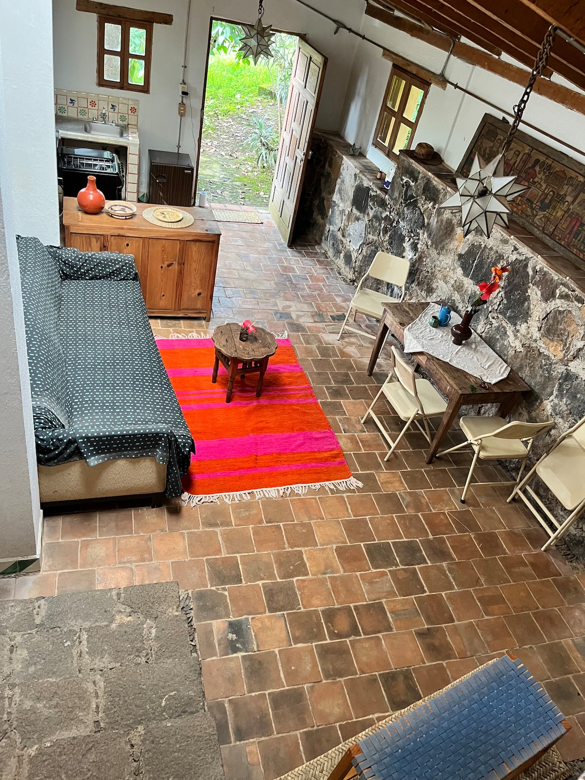 La casa está diseñada para hacer eventos familiares como comidas o reuniones ya que cuenta con una barra con bancos y espacio para recreación. Ninguno de esos servicios se cobra extra, ya están incluidos en el precio por noche. Además de que pueden pernoctar y descansar gratamente en un ambiente de pueblo pequeño el cual está lindo para recorrer.Ubicado cerca del camino a Uruapan, Zirahuen y a unos minutos Patzcuaro. Nota: Para ir al baño hay que atravesar el patio.