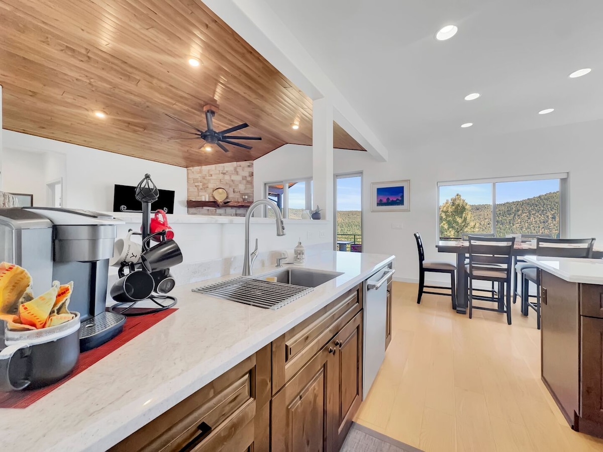 ¡Ubicación inmejorable, privacidad, estilo y vistas! ¡EL refugio PERFECTO! Limpieza y gestión profesional para cada huésped. Disfruta de impresionantes vistas a la montaña desde una amplia terraza envolvente. Relájate con wifi de alta velocidad, televisor inteligente de 50 pulgadas y aplicaciones de streaming. A poca distancia a pie del centro de la ciudad y a 5 minutos en auto del Pine Trailhead para excelentes opciones de senderismo. Esta casa bien equipada incluye muebles modernos, parrilla de gas, área de estar con chimenea y más.