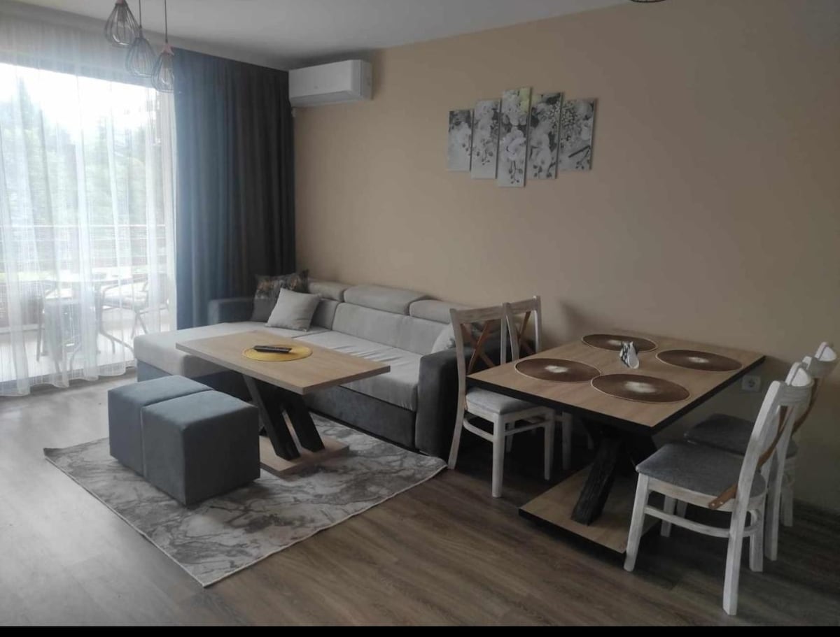 ¡Acogedor y lujoso apartamento en Panagyurishte! Se ubica en el quinto piso, cerca del hospital y de muchas tiendas. Hay un restaurante en el edificio. El departamento ofrece una vista maravillosa de las montañas. El departamento tiene un dormitorio, un baño con inodoro, una amplia sala de estar (con un sofá cama para dos personas) de planta abierta con comedor y cocina, y una agradable terraza. Todo está hecho con atención al detalle para hacerte sentir como en casa. Una opción ideal tanto para estadías cortas como largas. ¡Te estamos esperando!