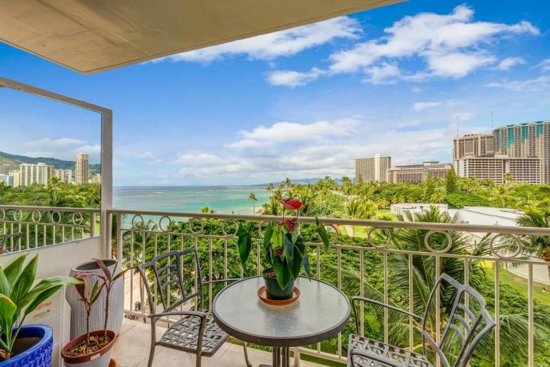 Apartamento renovado de 1 dormitorio y 1 baño en la planta superior en Waikiki. Hermosas vistas panorámicas al mar de 180 grados sin obstáculos desde el balcón Juliet. ¡Vea los fuegos artificiales del viernes por la noche y la puesta de sol desde la parte superior! Cama tamaño queen en el dormitorio. El baño tiene lavabo doble y ducha de vidrio a ras de suelo. Cocina totalmente equipada. Seguridad las 24 horas, los 7 días de la semana. Aire acondicionado central, cable, wifi incluido. Aparcamiento en garaje disponible por 33 USD al día. A cinco minutos a pie de la playa de Waikiki, el hotel Hilton, la laguna Duke y el centro comercial Ala Moana.