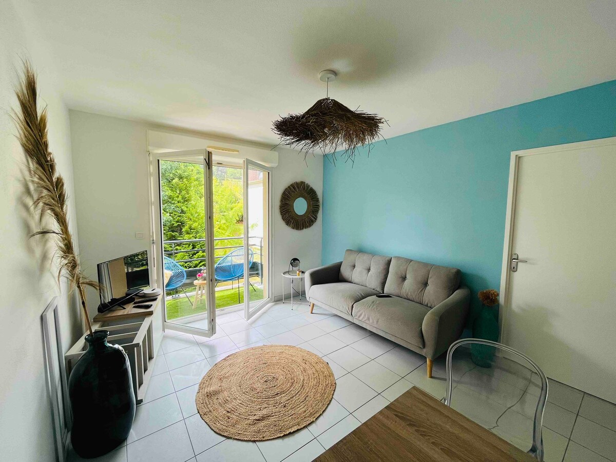 Agradable alojamiento en Sarlat de 47 m2 con Terraza y jardín , vistas impresionantes mientras permanece cerca del centro de sarlat accesible a pie. Se encuentra en una residencia tranquila y segura con piscina abierta a partir del 1 de junio. tiene aire acondicionado, y puede cargar su automóvil eléctrico de forma gratuita en el lugar de estacionamiento privado.