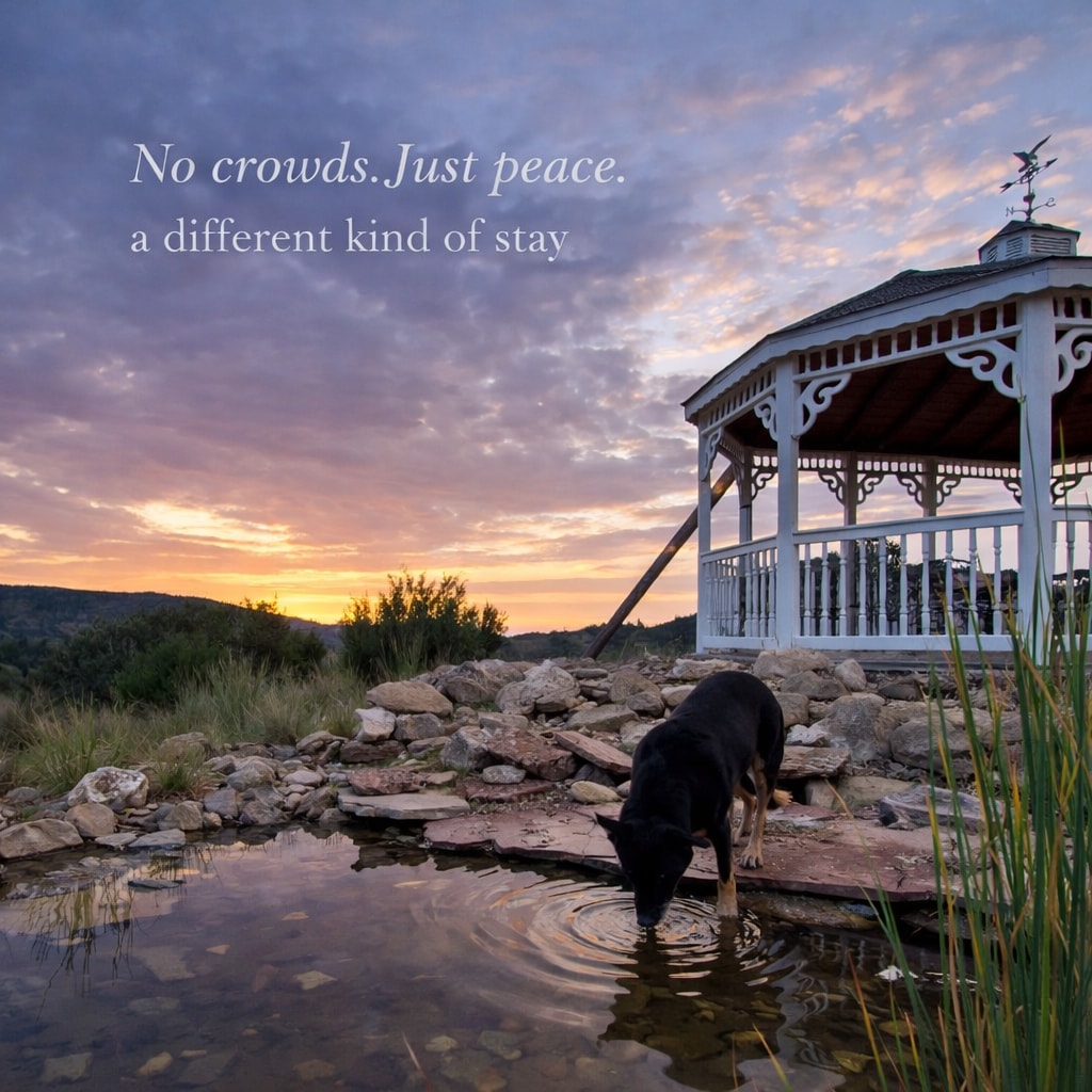 Escápate del ruido y desaparece por unos días. Ubicada en 15 hectáreas privadas en el límite del bosque, aquí la tranquilidad realmente significa algo. Sin multitudes, sin paredes compartidas: solo fogatas, estrellas y espacios abiertos. Lo suficientemente cerca de Ruidoso para cuando quieras… lo suficientemente lejos para cuando no quieras. Sal y te encontrarás rodeado de campos abiertos, aire del bosque y los inmensos cielos de Nuevo México. Pasa tus noches junto a la fogata y contempla las estrellas. Es sencillo, auténtico y exactamente lo que la mayoría de los lugares ya no pueden ofrecer.