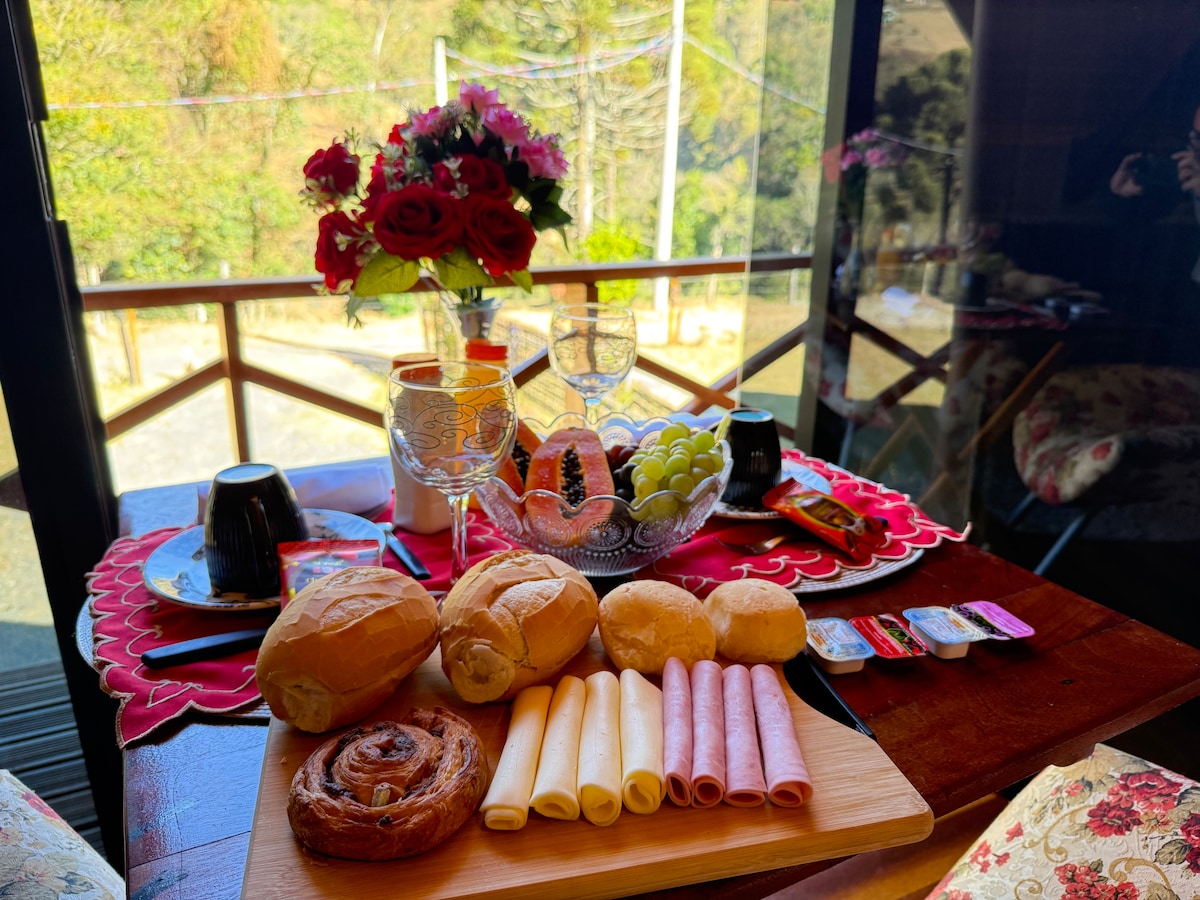 Chale Naturae tiene capacidad para 1 pareja (o 2 personas) que quieren disfrutar de la montaña. Fácil acceso a cascadas, senderos, centro de la ciudad, restaurantes y Campos do Jordão. Estamos en un terreno privado, vallado y con un huerto activo. ¡El chalet es rústico, súper acogedor y tiene una vista impresionante! Tiene una cama en el entresuelo, un sofá en la sala de estar, chimenea, wifi de excelente calidad, cocina equipada y baño con vistas a la naturaleza. También zona de fogón. Registro de entrada autónomo.