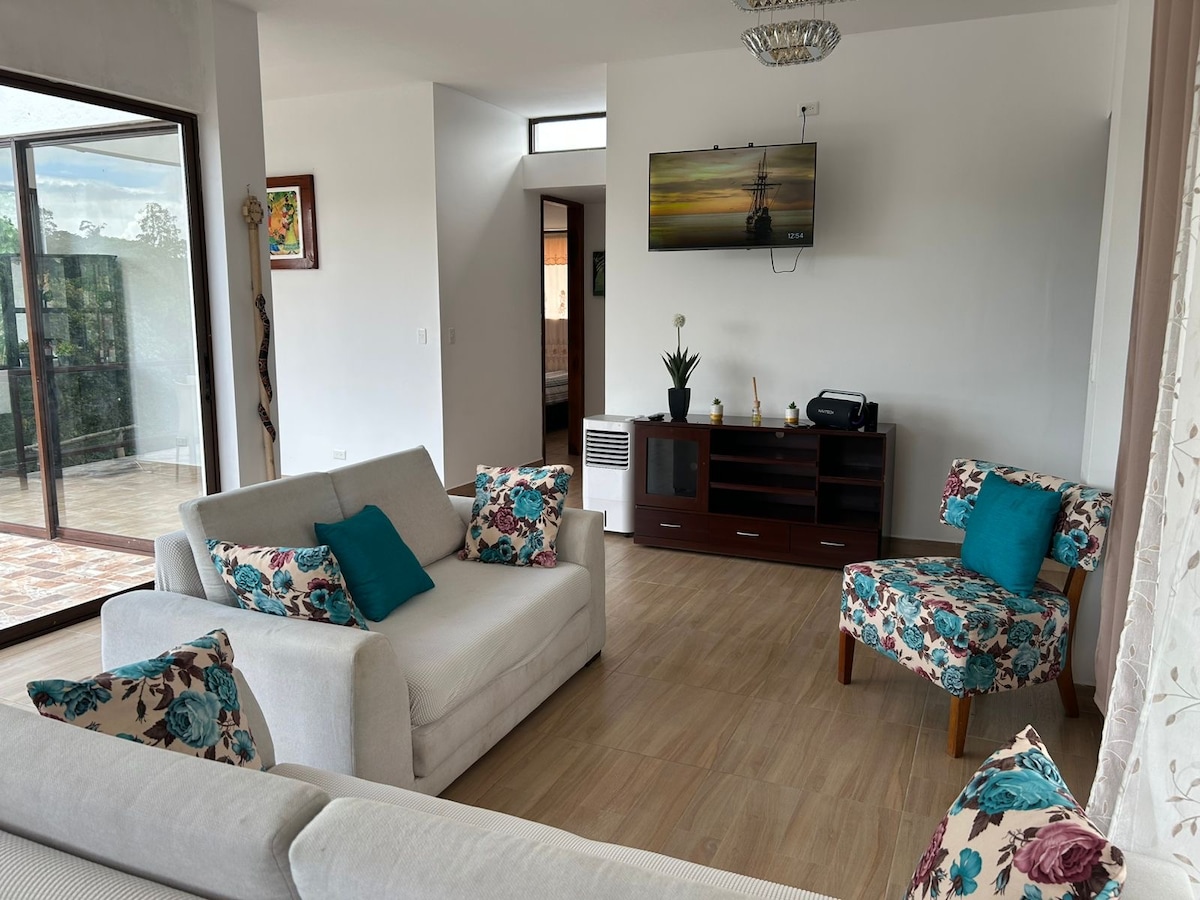 Descansa y diviertete con los tuyos en este bello alojamiento diferente a los demás. En nuestro sitio tienen todo a disposición: Seguridad, parqueaderos, piscinas, áreas deportivas, áreas BBQ, río y pequeña cascada en temporada de lluvia. Desde los interiores de ésta hermosa casa podrás observar la naturaleza en todo su esplendor, plantas, árboles, frutales, y una gran variedad de aves. La casa está completamente equipada, traigan sus provisiones y no necesitarán salir de la urbanización 🌳🏡🌳