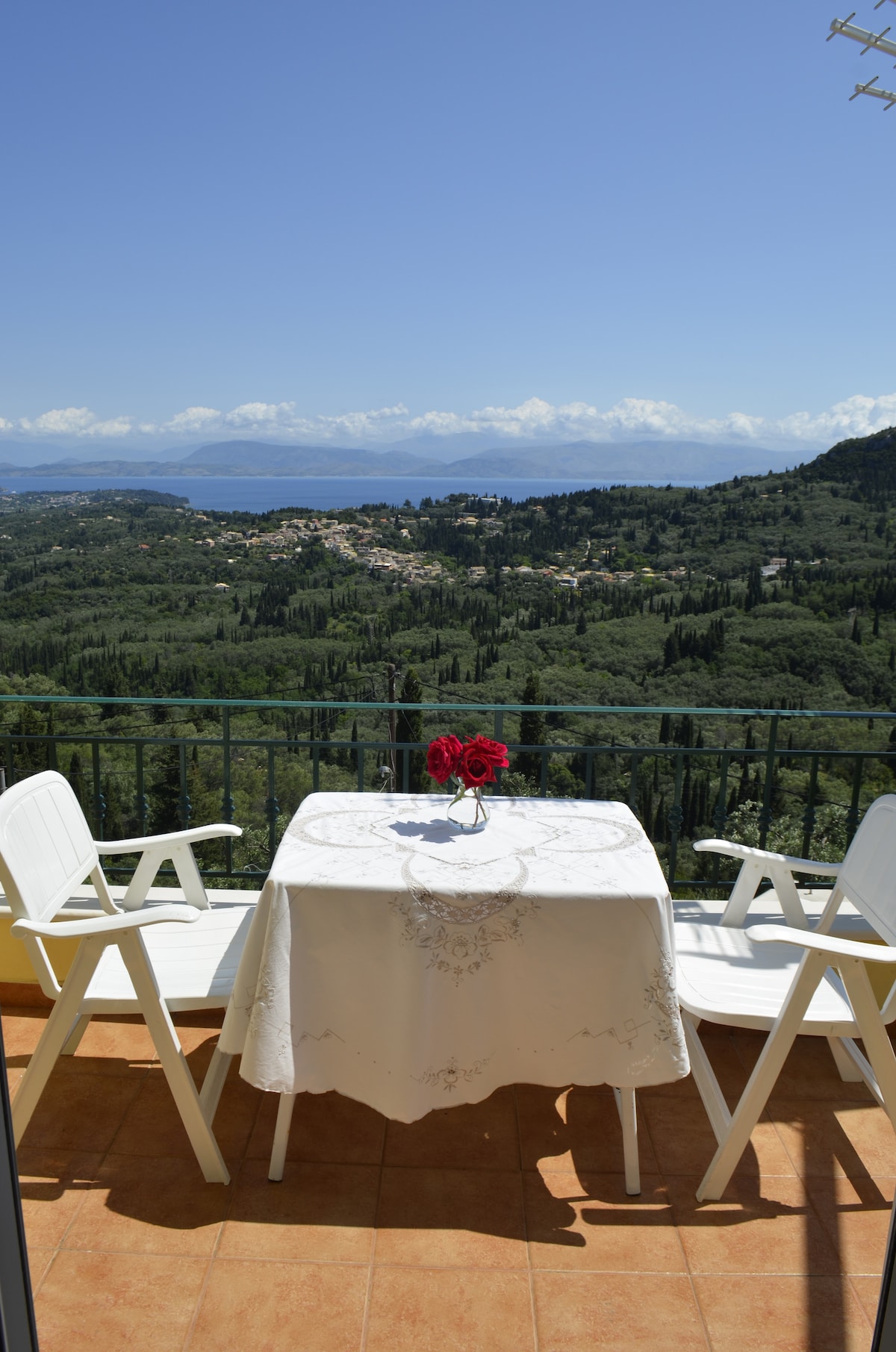 Ubicado en un hermoso y tranquilo pueblo tradicional, con vistas panorámicas al verde paisaje de Corfio y las aguas azules del Jónico, el apartamento te da la oportunidad de disfrutar del lienzo más idílico de la isla desde tu balcón. Prácticamente ubicado en el centro de la isla, te ofrece un fácil acceso a las playas del sur y del oeste a través de hermosas carreteras de naturaleza virgen y olivos perennes.