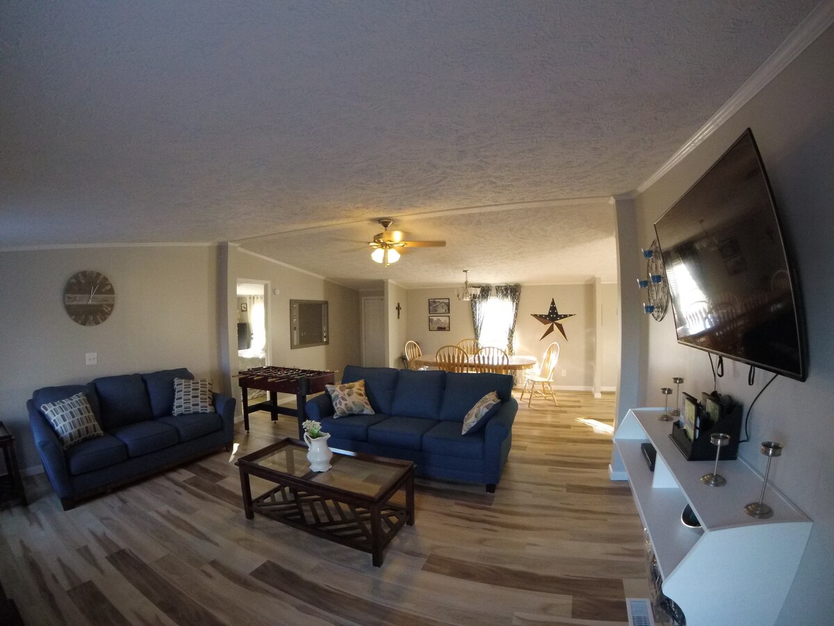 The Old Home Place tiene la belleza del país, pero a solo minutos de la ciudad. Estamos a 4,2 millas del Ark Encounter y a menos de una hora del museo The Creation, Cincinnati y Lexington. Nuestra casa es muy tranquila, con algo para todas las edades. La vista desde el patio trasero es impresionante. Nos sentamos en 100 acres de tierra y hay mucha naturaleza para disfrutar. Un agradable paseo por la cresta, o un juego de piscina, te ofrecerá un tiempo agradable lejos de casa.