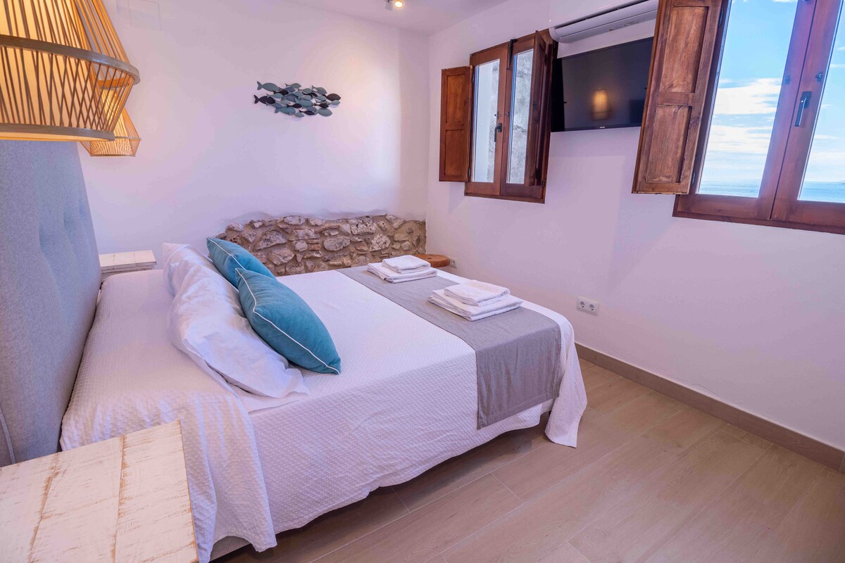 Ubicado en el casco antiguo de Peñiscola, AL ALBA es un apartamento reformado en 2022.Exterior, con vistas al mar en todas sus estancias dispone de 1 habitación de matrimonio y vestidor, 1 habitación doble con dos camas de 90 , baño y cocina. Totalmente equipado;TV, cafetera, microondas, vitro, horno, nevera, lavadora, tendedero, plancha, utensilios de cocina, ventiladores, secador de pelo, radiadores ,toallas y ropa de cama. 3r piso,sin ascensor Cuna € extra Parking € extra bajo disponibilidad