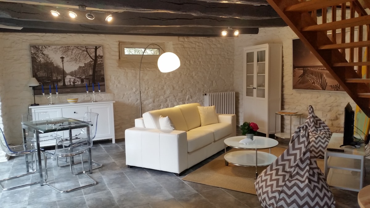 Esta casa / apartamento independiente renovado completamente en 2023 y situado en el centro de la ciudad a 50 m del palacio de congresos ofrece una estancia relajante para la familia o el trabajo, 2 dormitorios con vestidor. Una tiene una cama de 140 X 200 y la segunda según sus necesidades en 1 cama tamaño king 180 X 190 o 2 camas 90 X 200, SDE con ducha grande. cocina amueblada y equipada, ropa de cama nueva, Wifi, lavadora, refrigerador, TV LED, altavoz Bluetooth... ¡alejado de la calle, la tranquilidad está garantizada!