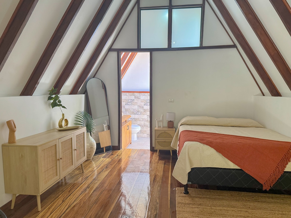 Relájate en esta escapada única y tranquila. Villa Colibrí es el espacio ideal para desconectarte del ritmo agitado de la ciudad y conectarte contigo mismo y la naturaleza. Rodeada por un exuberante jardín tropical. La villa cuenta con baño privado completo, cocineta equipada, terraza techada y al aire libre. El dormitorio te brinda la comodidad de una cama Queen, SmartTV y ventilador portátil. Complementan ropa de cama y toallas de baño.