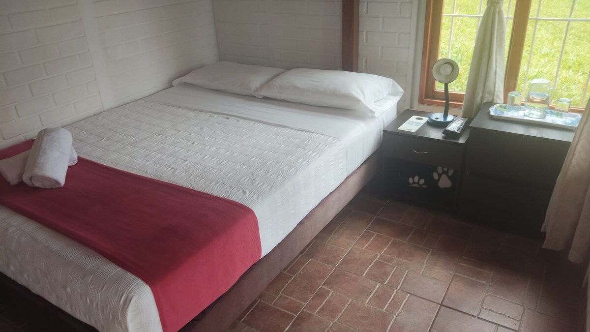 Descansa en un hotel con impresionantes vistas a las montañas que hacen parte de la zona de amortiguacion del Parque Nacional Natural Los Nevados, el arruyo natural que ofrece el sonido del rio campoalegre y una ubicacion privilegiada a solo 10 minutos en vehiculo de los famosos Termales de Santa Rosa, ofrecemos habitaciones comodas, salon social, parqueadero privado, zona comun WIFI, sendero ecologico con acceso privado a zona de rio.