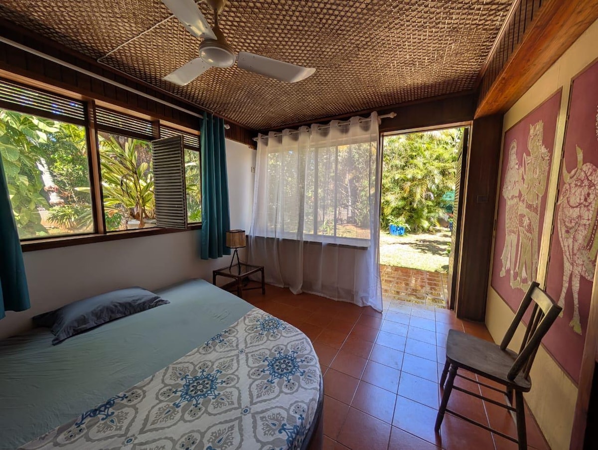 A beach apartment with a common enclosed sandy garden that leads to the seafront. Our 50 year old Badamier tree extends the veranda by covering the sand stretched courtyard from too much sun. Inside is a fully equipped kitchen, living space, homely bedroom and spacious bathroom. A parking in the front yard ensures the safety of cars from the road. The services from a cleaner, who comes 5 times a week, is offered She does laundry and freshens up the studio during your stay.