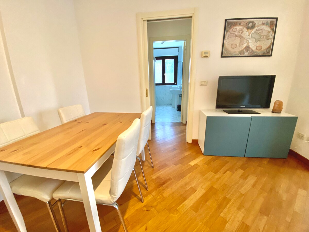 Precioso apartamento de dos habitaciones ideal para una pareja que viaja, o para quien trabaja, en el segundo piso con ascensor, que consta de cocina equipada con todo y con lavadora; dormitorio-sala de estar con cama doble, sofá de 3 plazas, TV, escritorio, ventilador de techo. A 100 m de la playa pública con chiringuito y ducha; a 700 m de la estación de tren y de la terminal de autobuses; a 300 m de la zona de locales; zona céntrica y peatonal (parque lineal "strada parco"), ampliamente comunicada por transporte público