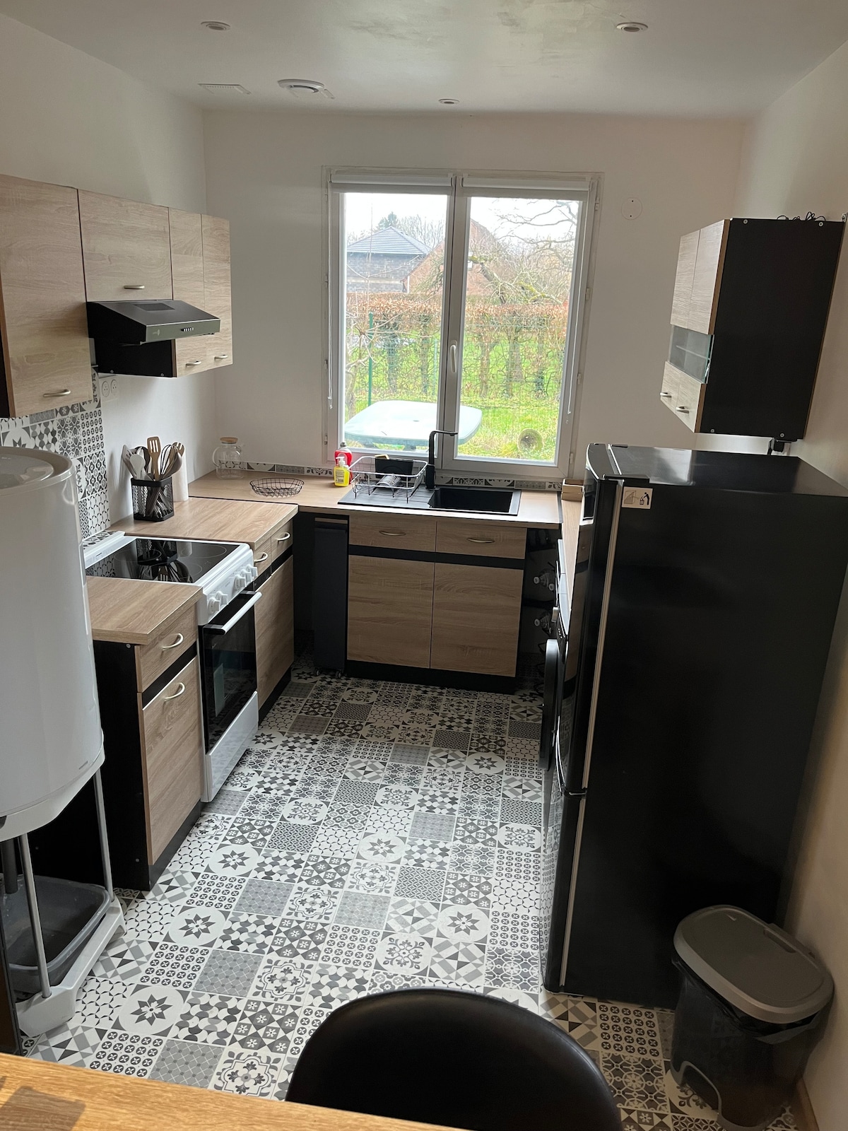 Descubre nuestra casa de una sola planta, cálida y espaciosa, perfecta para una estancia acogedora y relajante. Ubicada en un entorno tranquilo, esta casa es ideal para familias, parejas o amigos que deseen disfrutar de un alojamiento acogedor y totalmente equipado. Características de la casa: Dos cómodas habitaciones, gran sala de estar, cocina totalmente equipada, baño moderno, dos agradables terrazas exteriores con jardín. Estación de Phalempin cerca , dirección Lille centro.