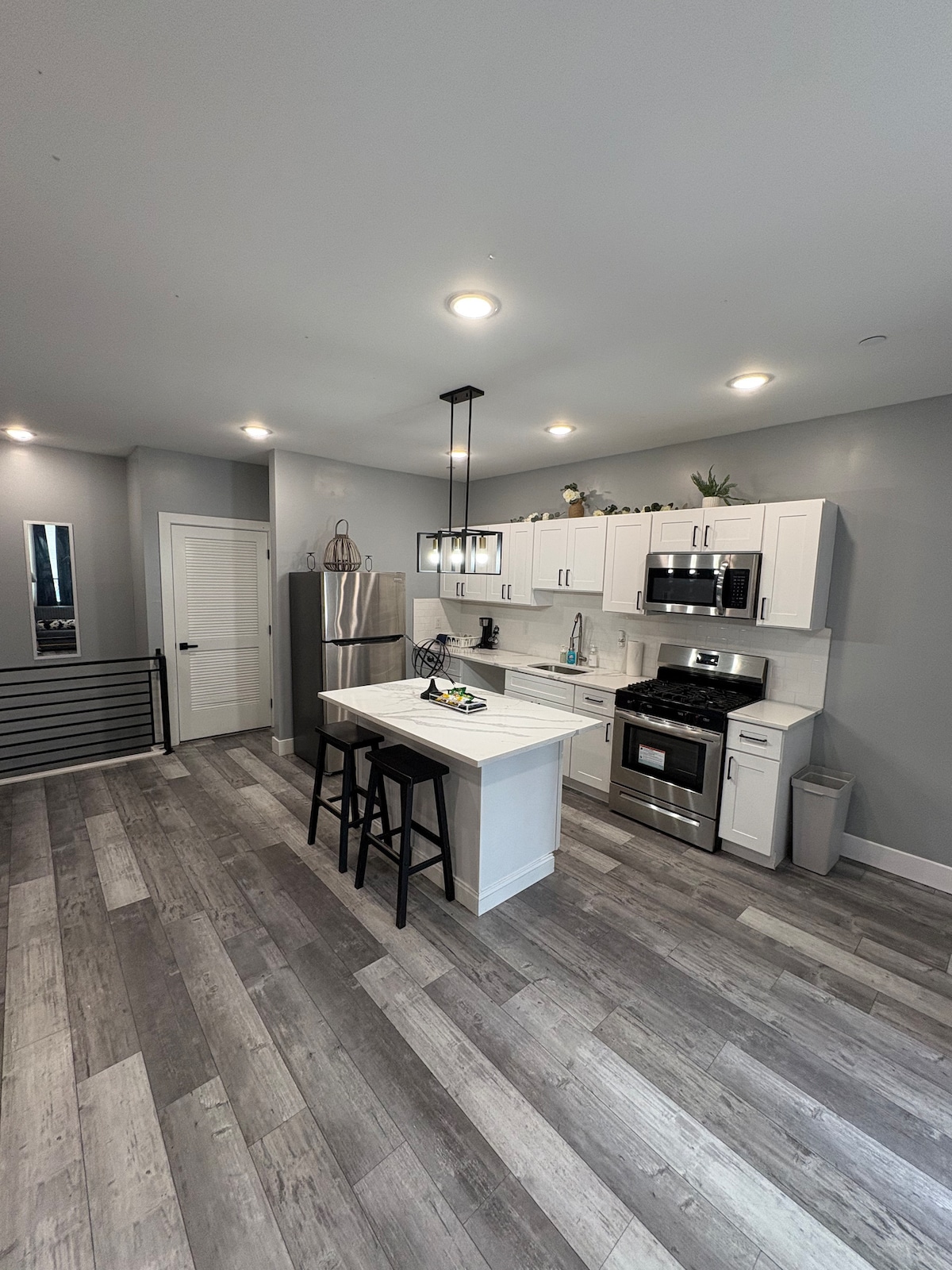 Bienvenido a este nuevo y exclusivo alojamiento de 2 dormitorios/2 baños donde el estilo se une a la clase. Estás a pocos minutos de restaurantes/tiendas y de la mayoría de las atracciones por las que la gente visita Filadelfia. Esta unidad tiene un diseño elegante de planta abierta, chimenea, lavadora/secadora y una gran isla para trabajar o preparar comidas en la cocina totalmente equipada. 2 dormitorios tamaño queen con amplio espacio en el armario. Baño completo fuera del dormitorio 1 y baño completo dentro del dormitorio 2. Todas las habitaciones tienen televisores inteligentes. Echa un vistazo a la azotea compartida. Vacaciones, escapada de fin de semana o viaje de negocios, lo tienes todo cubierto.