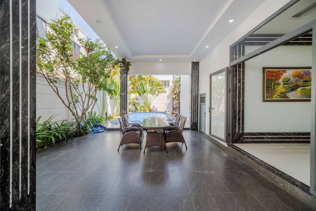 Esta es una VILLA CON PISCINA PRIVADA FRENTE A LA PLAYA DE 4 DORMITORIOS + 4 baños, pertenece a la fase 2 del centro vacacional Sanctuary Ho Tram. - Superficie: 492 m2. - 4 dormitorios dobles (incluidos 3 dormitorios dobles con balcón con baño en suite + 1 dormitorio doble en la planta baja que utiliza el baño fuera de la habitación). - Alojamiento para 8 adultos + 4 niños menores de 11 años. - Enorme terraza para tomar el sol y entretenerse. - Jardines paisajísticos tranquilos y tropicales. - Cocina totalmente equipada - Piscina privada. - Aparcamiento cubierto.