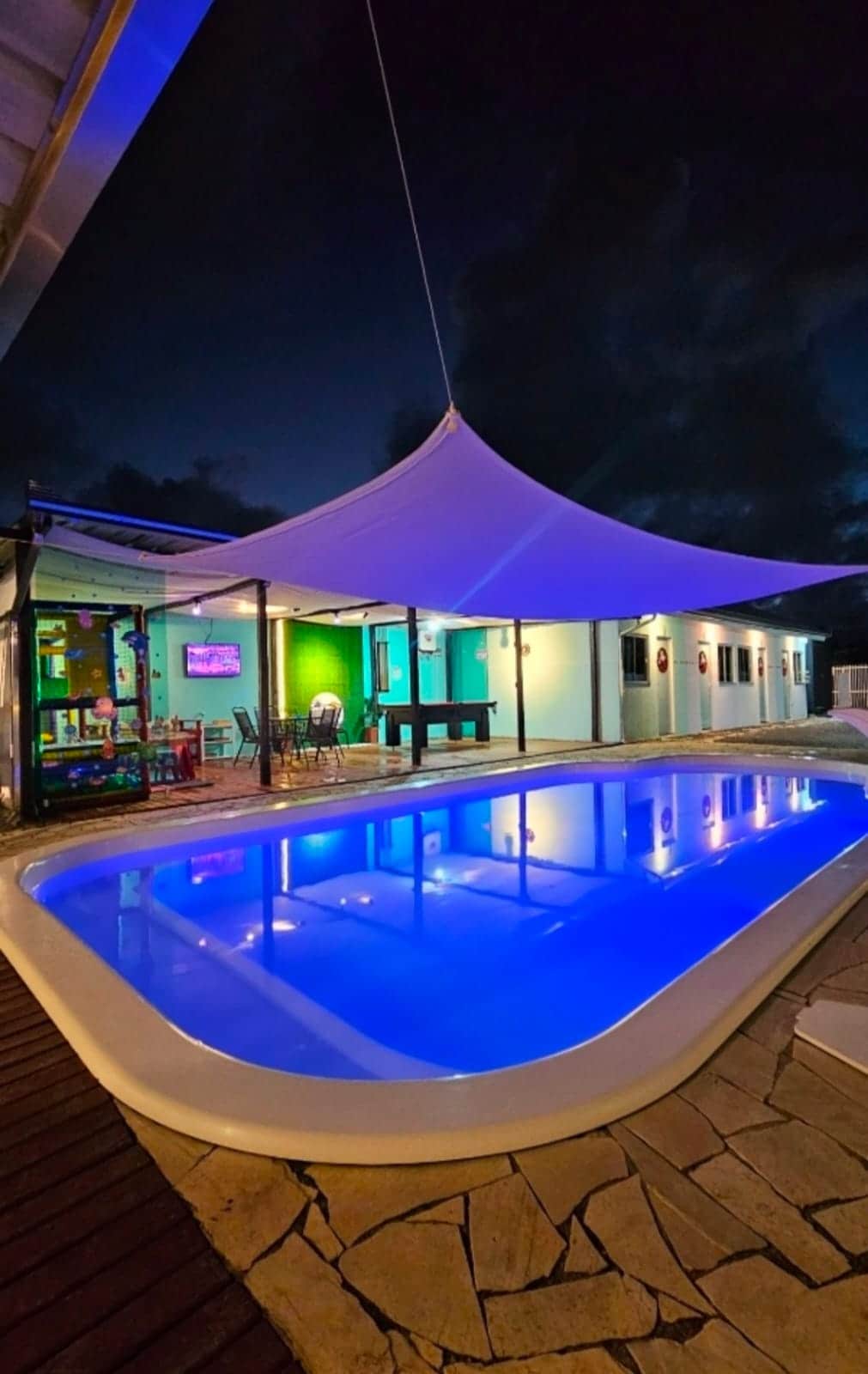 El dormitorio tiene una cama doble, acogedora y cómoda, con aire acondicionado. La casa cuenta con habitaciones compartidas con otros huéspedes y el propietario, siendo cocina, baño y área de ocio con piscina. Tenemos mascotas en la casa, todo el resultado de un rescate. Hay 5 perros y una gata, todos amables y acostumbrados a los huéspedes. La casa está a unos 180 metros de la playa, en el centro de Piçarras. Cerca hay una farmacia, mercado, restaurantes y panaderías.