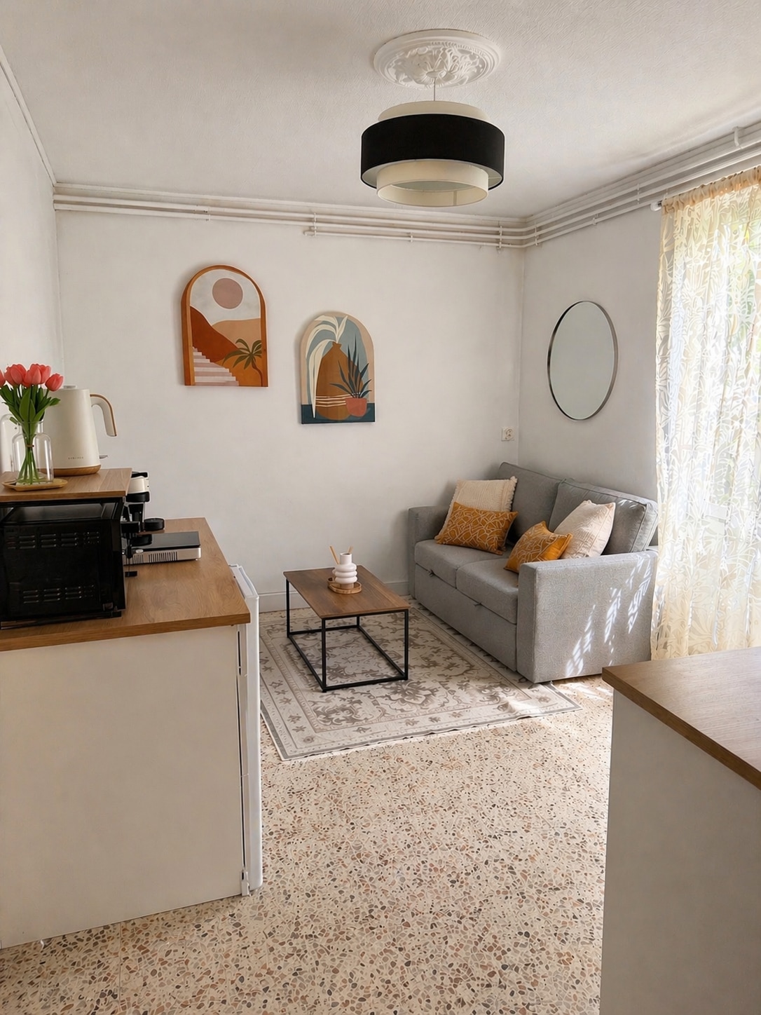 Este encantador alojamiento está clasificado en 4* Perfecto para 2 personas, acaba de ser totalmente renovado Es espacioso, muy bien equipado, cómodo y podrá relajarse en una cama de 160 con colchón de memoria Está situado en un pequeño edificio también clasificado, tranquilo, en pleno centro, en una pequeña plaza animada en verano Todo el mobiliario es nuevo. Amplio 50m2. Servicio de limpieza. Alojamiento no adaptado a personas con movilidad reducida.
