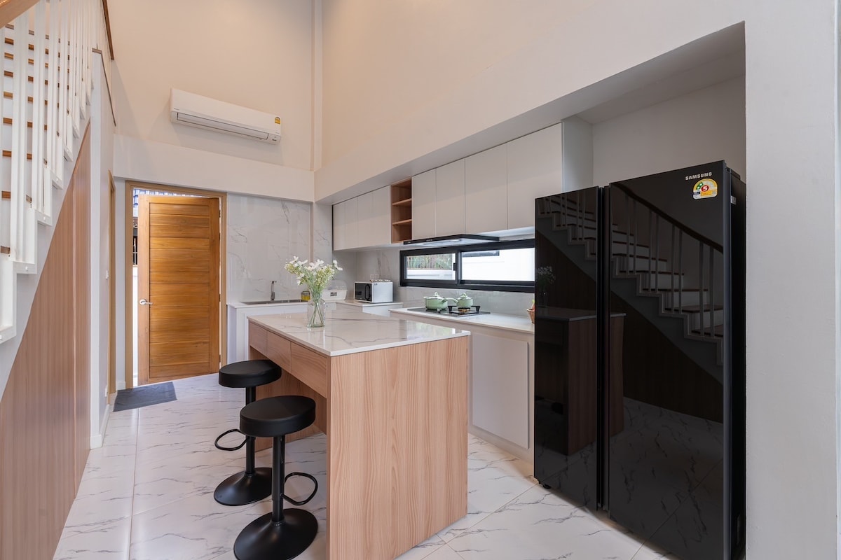 Acogedora casa de estilo tailandés de 2 plantas de madera y hormigón con loft en un pueblo local cerca del templo, cafeterías y restaurantes, cafeterías con wifi, cocina, bicicletas y lavadora.