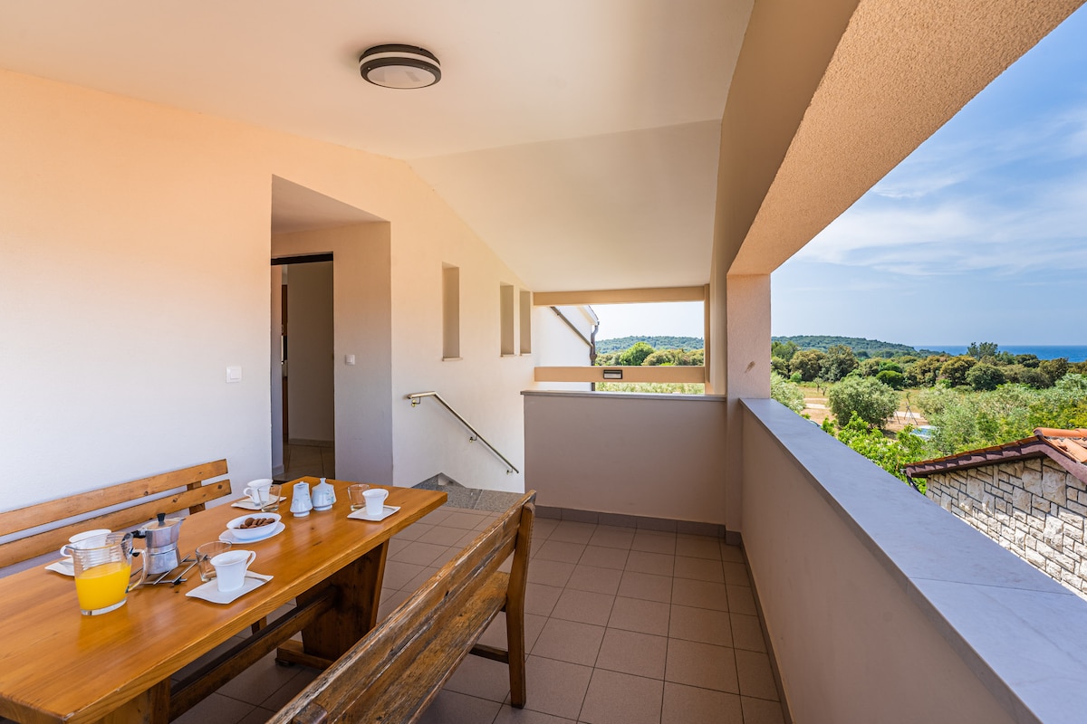 Este alojamiento único tiene su propio estilo. Desde la terraza puedes disfrutar de la magnífica vista del mar infinito. La playa derecha está a poca distancia a pie, a unos 150 metros. Además de la cama en el dormitorio, el sofá cama extraíble en la sala de estar ofrece otra posibilidad de dormir para dos personas. El apartamento se encuentra en el segundo piso y es accesible a través de una escalera. Instalaciones comerciales disponibles. El centro de la ciudad de Pula está a 3,8 km.