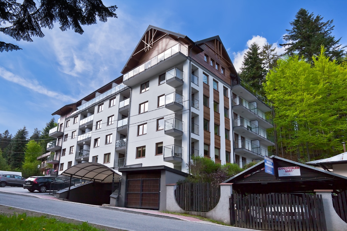 Dwa pokoje z łazienką 2 minuty od deptaku z widokiem na Górę Parkową. Apartment dopracowany w każdym detalu, tak by spełnić idealne warunki do odpoczynku w pięknym wnętrzu. Bardzo wygodne łóżka i piękne widoki z okna. Do dyspozycji internet oraz telewizja kablowa, smart TV. Idealne miejsce wypadowe zarówno do zwiedzania centrum jak i wyjazdu na narty lub snowboard. Przy kamienicy znajduje się przystanek autobusowy, gdzie co godzinę jeździ darmowa komunikacja bezpośrednio pod stoki narciarskie.