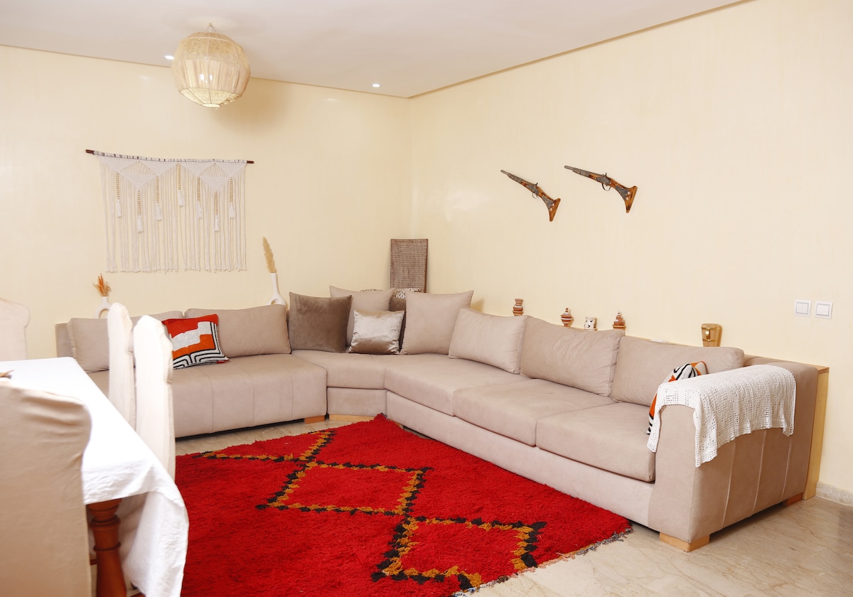 Este encantador bungalow frente a la playa es el lugar perfecto para relajarse y disfrutar de las impresionantes puestas de sol sobre el Atlántico. Con acceso directo a la playa, un refrescante baño está a solo unos pasos. Disfruta de las muchas zonas acogedoras y cómodas para recostarte y relajarte, incluida una terraza con vistas a la bahía de Bouznika, así como un tranquilo patio trasero con una zona de comedor al aire libre. Perfecto para unas vacaciones familiares o una escapada en pareja. ¡Estamos encantados de hospedarte y hacer que tu estancia sea lo más cómoda posible!