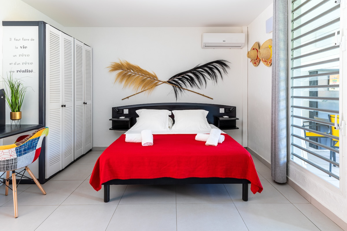 Estudio situado en una calma absoluta en el barrio residencial de Pain de Sucre. 1 habitación con aire acondicionado. Wifi Tiene 4 playas a menos de 5 minutos a pie del alojamiento, incluyendo la más famosa Le Pain de Sucre (lugar agradable para hacer esnórquel). Para los amantes del senderismo, tenemos el camello donde se puede ir a ver un bonito amanecer/atardecer. Vistas a Guadalupe y Terre-de-Bas. Será muy bienvenido en un entorno idílico. Unas vacaciones con total tranquilidad