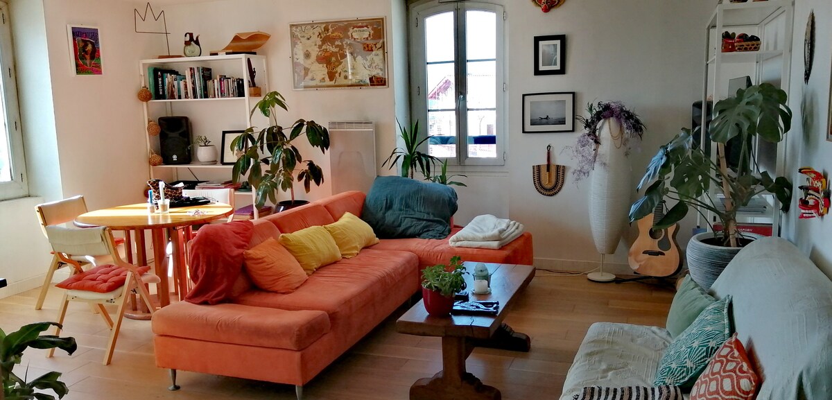 A 10 minutes du centre de Bayonne et de Biarritz , Jean et Isabelle seront heureux de vous accueillir à la maison Millet demeure ancienne qu' ils ont restaurée. Située entre le parc du Maharin et la forêt de pins de Chiberta, les plages Angloyes seront à 5 min en voiture ou à 20/25 min à pieds et accessibles à vélo par la forêt. Le logement en duplex comprenant un jardin privatif de 30 m² est une dépendance accolée à la maison des hôtes . Stationnement facile dans la rue .