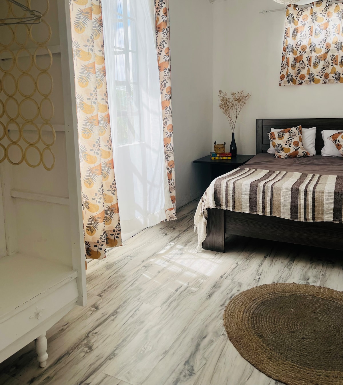 Welcome to your home away from home! This stylish and cozy apartment offers a contemporary design, perfect for relaxing or working remotely. Featuring a bright living space, a fully equipped dining area, and sleek track lighting for a warm ambiance. The bedroom is designed for restful nights, and the bathroom is elegantly fitted with modern amenities. Located in the heart of Ebene City, this space is ideal for both leisure and business travelers. Unwind in style and make your stay unforgettable!