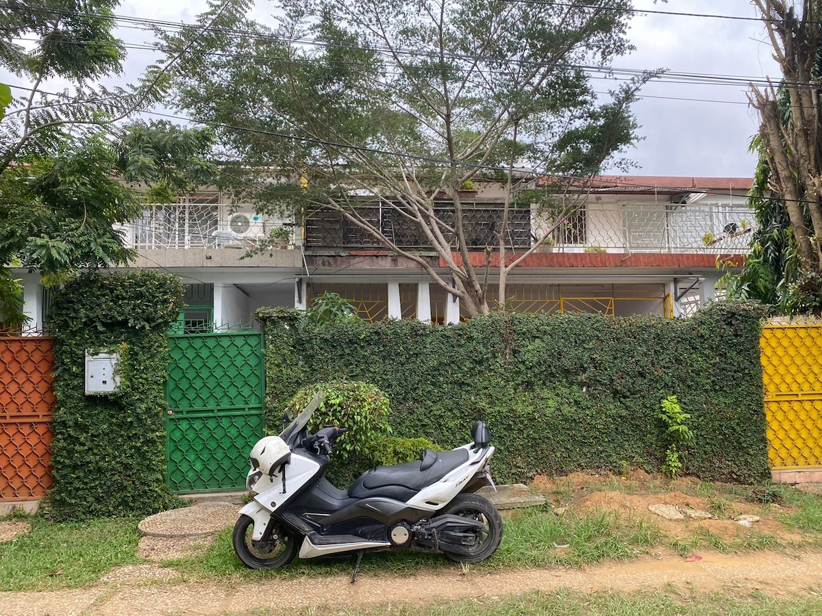 Estancia en el corazón de la ciudad de Abiyán en el municipio de Cocody ( en Angré ) en un bonito alojamiento cerca de todos los servicios. Este apartamento con aire acondicionado incluye un dormitorio, una estancia, un patio para sus desayunos, almuerzos,cenas o cualquier otra comida en pareja o en familia. Se proporcionan toallas y ropa de cama, así como un servicio de limpieza gratuito a petición. Se beneficia de forma gratuita de un servicio de transporte al aeropuerto (llegada) para una estancia de más de 10 días.