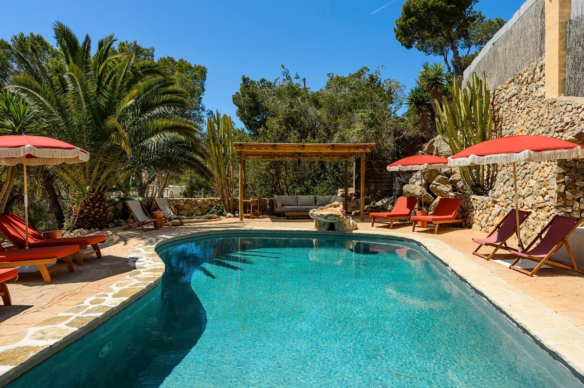 ¡El mejor lugar para experimentar la verdadera Ibiza! ¡Esta finca es una joya oculta, pero en una ubicación súper céntrica! Casa de huéspedes privada y espaciosa, tienes una hermosa vista de 360° desde el amanecer hasta el atardecer, con un alojamiento de 125 m², para 6 personas y una zona al aire libre de 4 hectáreas, que incluye una piscina de agua salada, jacuzzi, gimnasio al aire libre y terraza de yoga, zona de barbacoa, bar en la piscina y parque infantil. Animales y árboles frutales. ¡Cerca de muchos lugares famosos, las playas más hermosas y los mejores restaurantes!