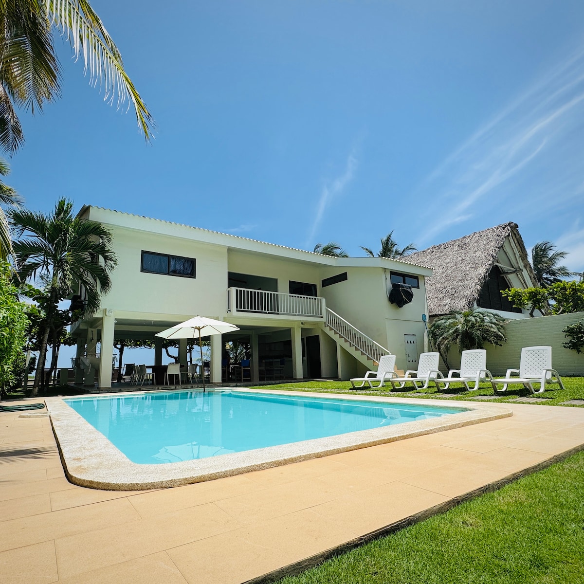 Verano Azul is an ocean front beach house that offers everything you will need for a stay with family and friends. This beautiful home sits on one of the best beaches in El Salvador, Costa Azul, in a private gated neighborhood, away from the city lights and noises for a stress free vacation. You can relax, read a book, sip your favorite drink in the hammocks or in the beach front cabanas marveling and listening to the ocean waves and enjoying the best sunset and sunrise in El Salvador.
