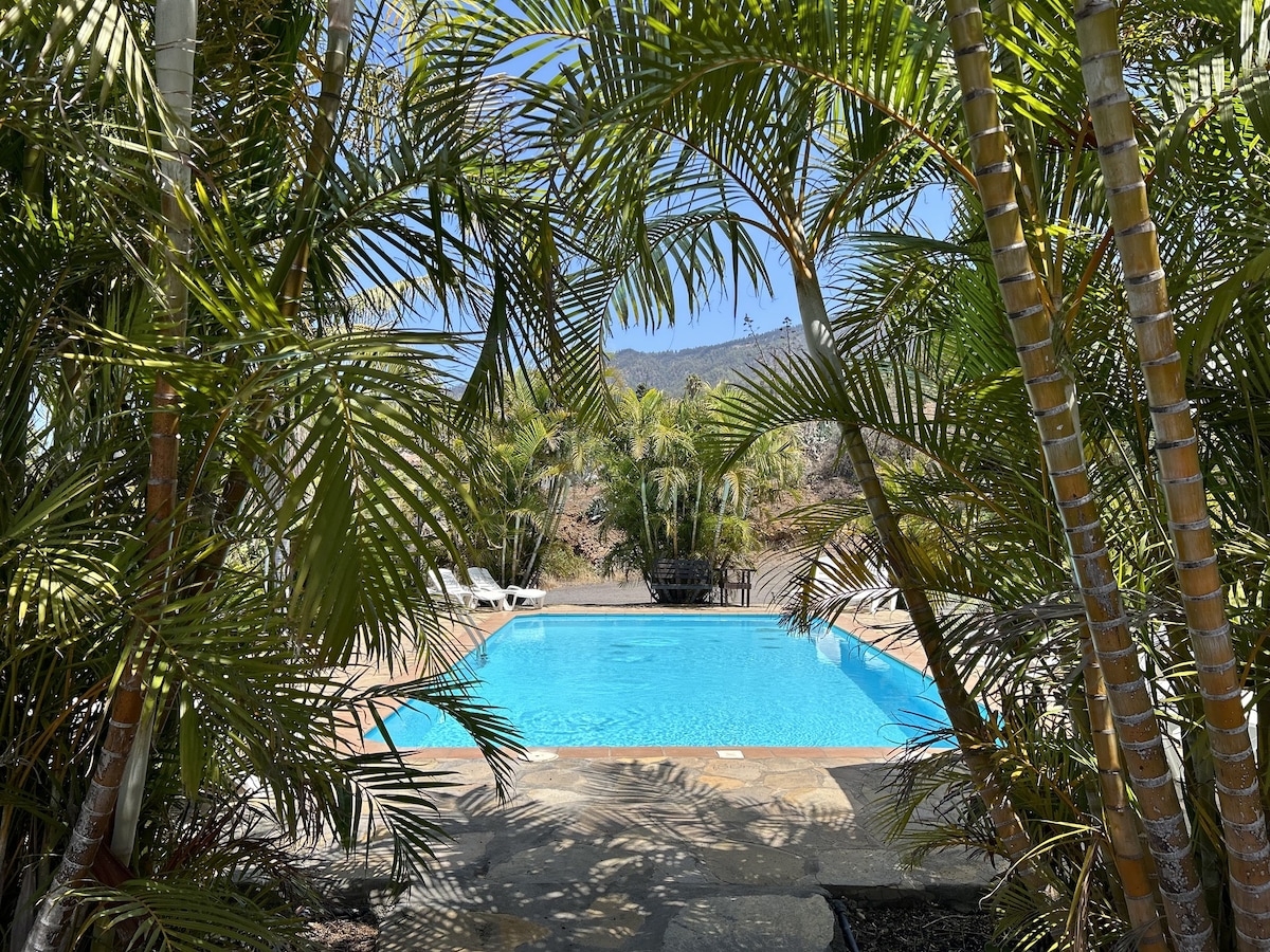 The perfect place to unwind and enjoy la isla bonita, the spectacular sunset, the lovely heated pool, the beautiful starry sky and the hiking trails that start right on the doorstep. Relaxation pure in the middle of nature. The cozy, stylish house is surrounded by old almond trees, on 2 hectares of private land in the middle of a nature reserve in Puntagorda at a hight of around 900 meters.