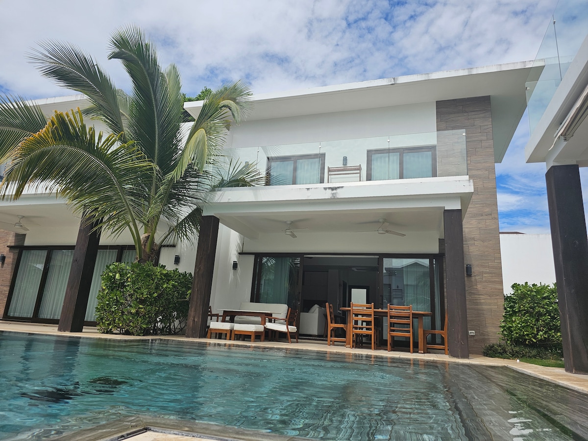 Linda Villa en alquiler. Se encuentra en el primer nivel y cuenta con piscina privada, es de fácil acceso para personas mayores e ideal para familias. El complejo cuenta con una de las piscinas con río más grandes del país. En la villa caben 6 personas cómodamente, sin embargo, de ser necesario hay 3 camas adicionales imperiales abajo de todas las camas.