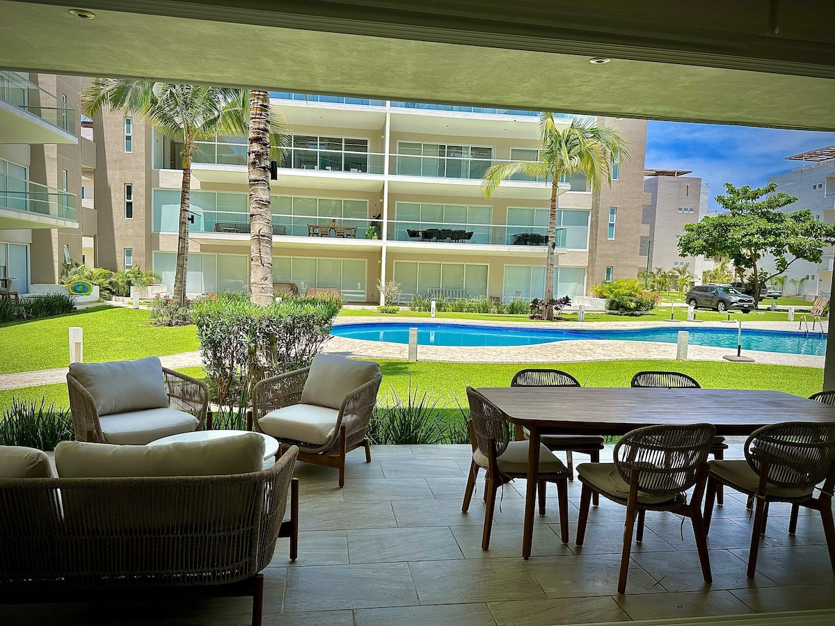 Lujoso, moderno y amplio departamento al pie del mar con vista espectacular de la bahía. El condominio tiene acceso directo a la playa, una zona de alberca con jardin, wifi gratuito en áreas comunes, sundeck y playa privada ! Ambiente relajado y familiar, seguridad las 24h y un personal muy amable y eficiente. Excelente ubicación, a un paso del club de golf, muchas opciones de restaurantes y supermercado cercanos. No se aceptan mascotas.