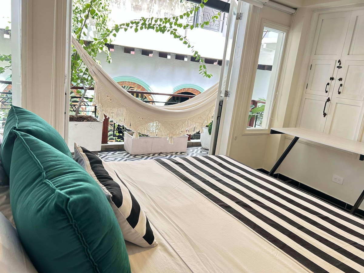 Delight in a contemporary duplex within a boutique hotel in the Historic Center of Santa Marta. This is perfect for three people, with two spacious levels, comfortable beds, air conditioning, and a private bathroom. The hotel has a littlel pool, gym, and is in a great location, just steps from the Cathedral, restaurants, and the most famous places in the colonial center.