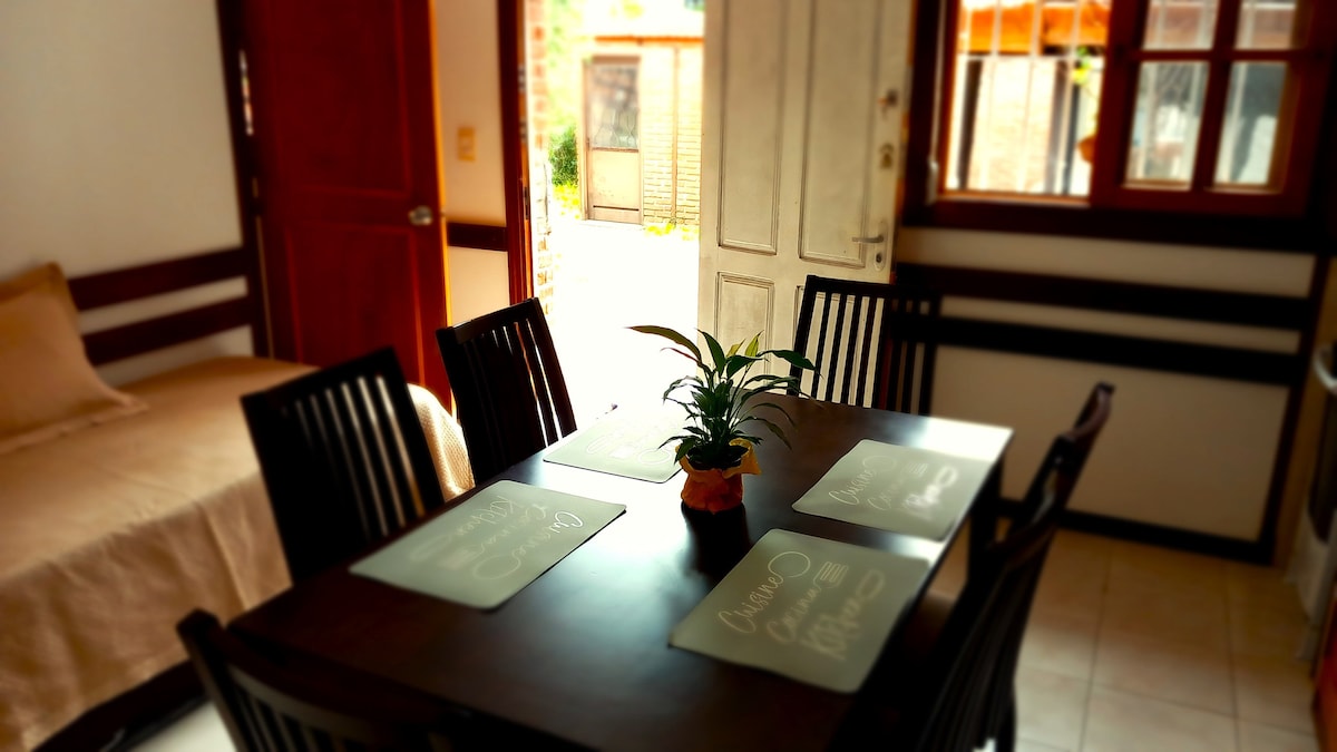 Desconecta de la rutina en este alojamiento único y relajante a pasos de la playa. Cuenta con un dormitorio y una cama extra de una plaza en caso q se necesite para niños. Ropa de cama y toallas incluidas en el precio. Parrillero y un lugar en el jardín para disfrutar de tu estadía. Transporte público pasa por la esquina, centro de Maldonado a 10 minutos y Punta del Este a 15 minutos. Restaurantes y comercios a pocas cuadras de nuestra casa de huéspedes.