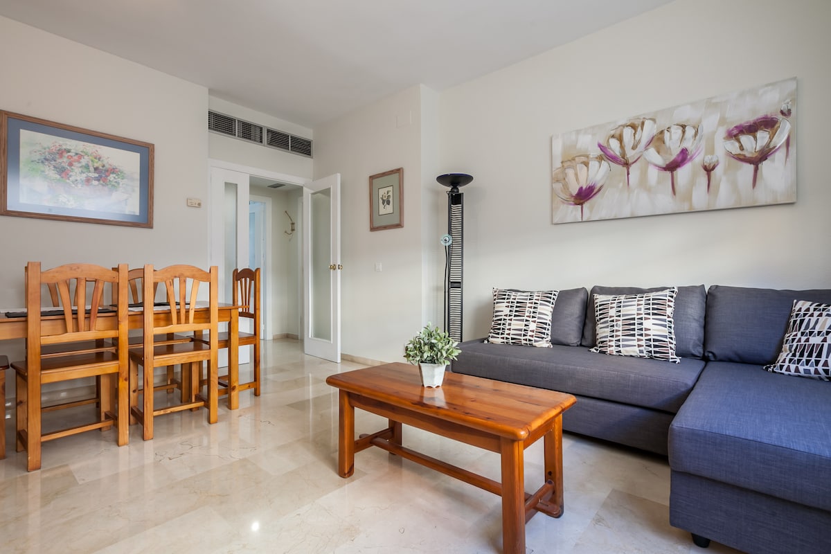Este moderno y amplio apartamento está situado en el centro de Sevilla, muy cerca de la Plaza de España y los principales monumentos. En una zona tranquila y segura, rodeado de magníficos restaurantes y bares. Muy bien conectado con el transporte público: tranvía, metro, bus. Con una decoración cuidada al detalle. Dispone de una acogedora habitación, salón y cocina independiente. Está enfrente de la antigua Estación de Cádiz, convertida hoy en mercado y centro deportivo. Con WiFi, A/C y ASCENSOR