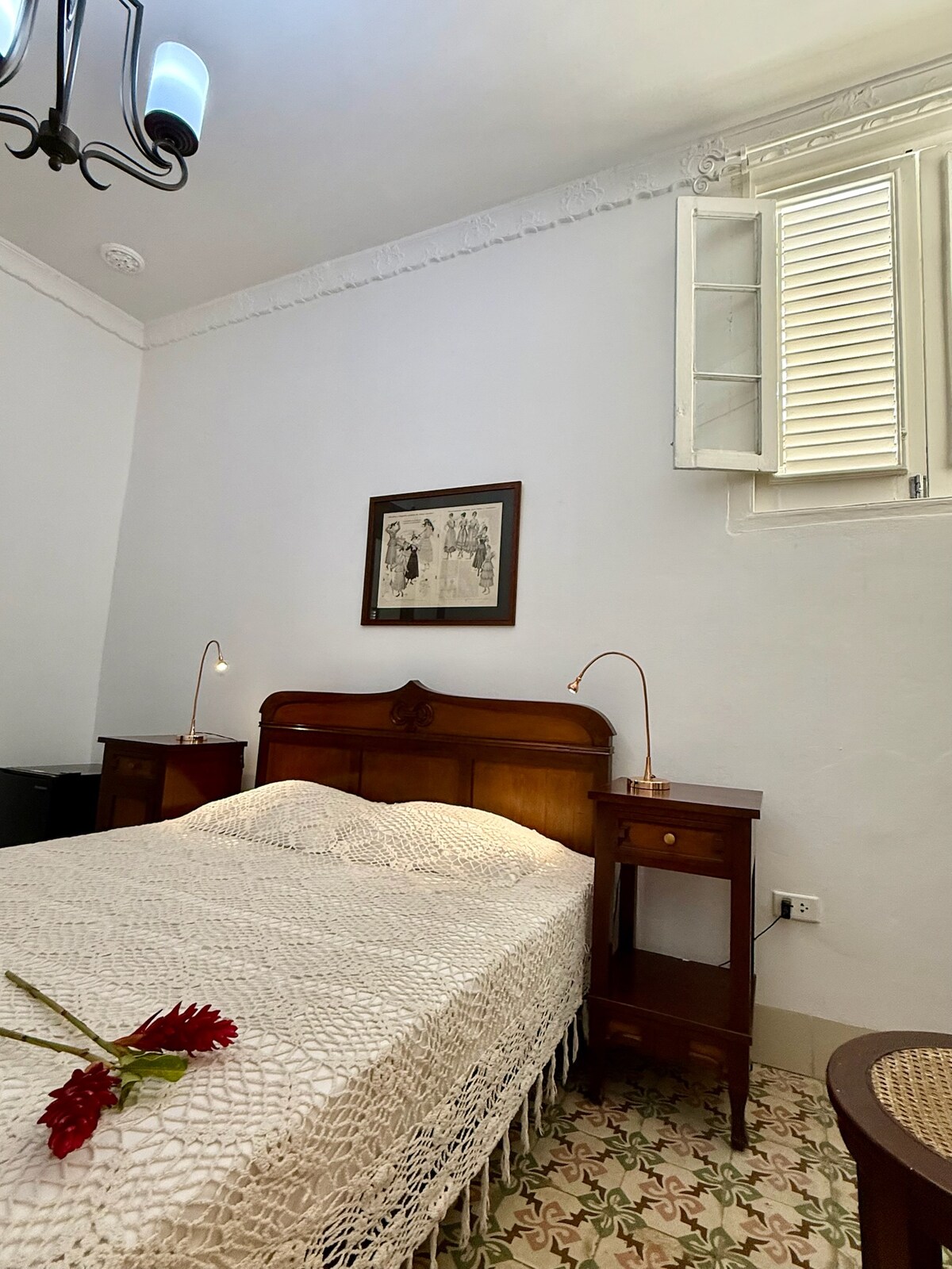 Un área de más de 100m2 solo para ti. Con su propio generador elèctrico, caja fuerte y minibar en tu habitacion. Inmejorable ubicaciòn, a 5 cuadras del mar, donde caminando puedes encontrar restaurantes, bares y museos o conexiones a cualquier lugar de La Habana. Decorada con arte de pintores cubanos reconocidos. Arquitectura de los años 40, espacios amplios, tranquilos y ventilados. Habitaciòn con baño privado, hall, desayunador y portal inmenso que se abre al