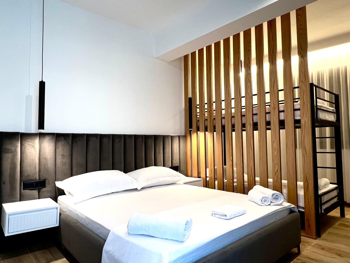Elegant Serenity in the Heart of Ksamil Welcome to your sanctuary in Ksamil, where modern sophistication meets tranquil comfort. This meticulously designed suite offers a blend of luxury and practicality, featuring sleek contemporary furnishings complemented by warm, inviting tones. Our clients can use the hotel pool for free. The pool is seasonal, open from 01.06 - 30.09. We also have free parking.