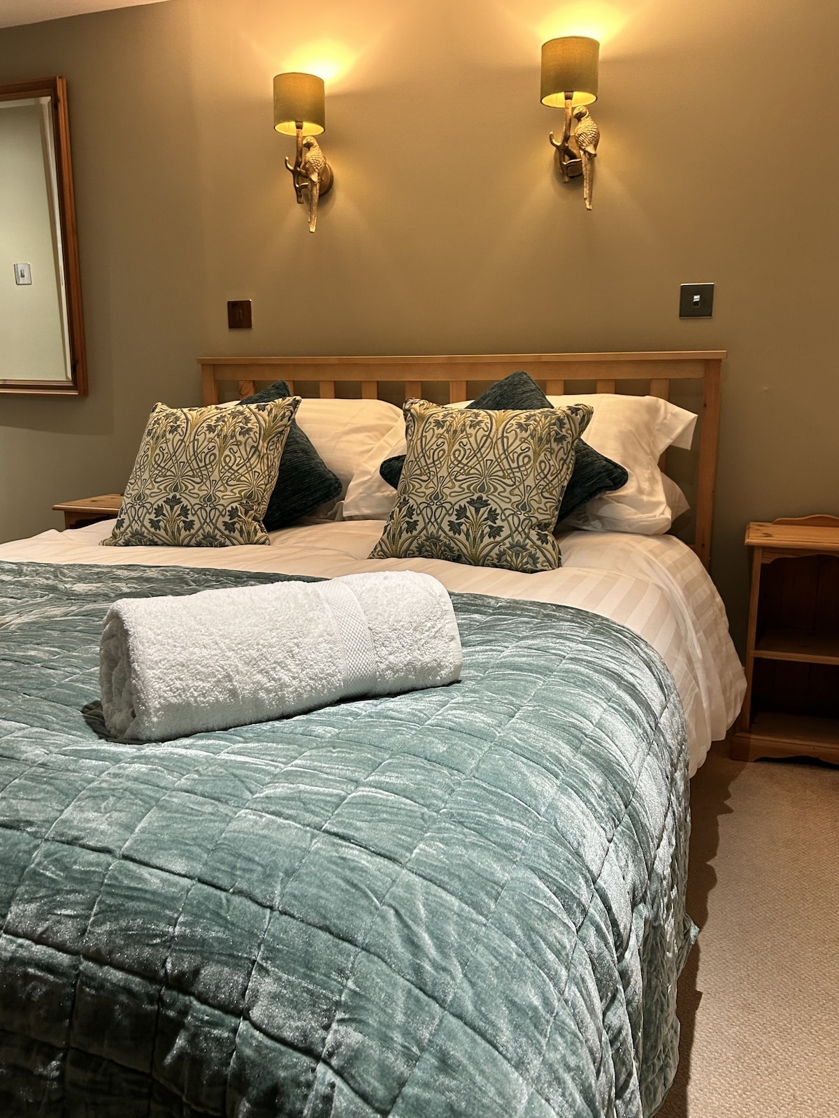 Habitación que consta de una cama tamaño king. Esta es una habitación con baño que tiene capacidad para 2 personas. Si quieres reservar para un niño o un bebé, debes ponerte en contacto con el hotel. Se admiten hasta 2 perros en la habitación, por el precio de £15 por perro por noche. Esta habitación tiene un baño privado con ducha sobre la bañera, lavabo e inodoro. Instalaciones para preparar té y café. Se incluye desayuno.