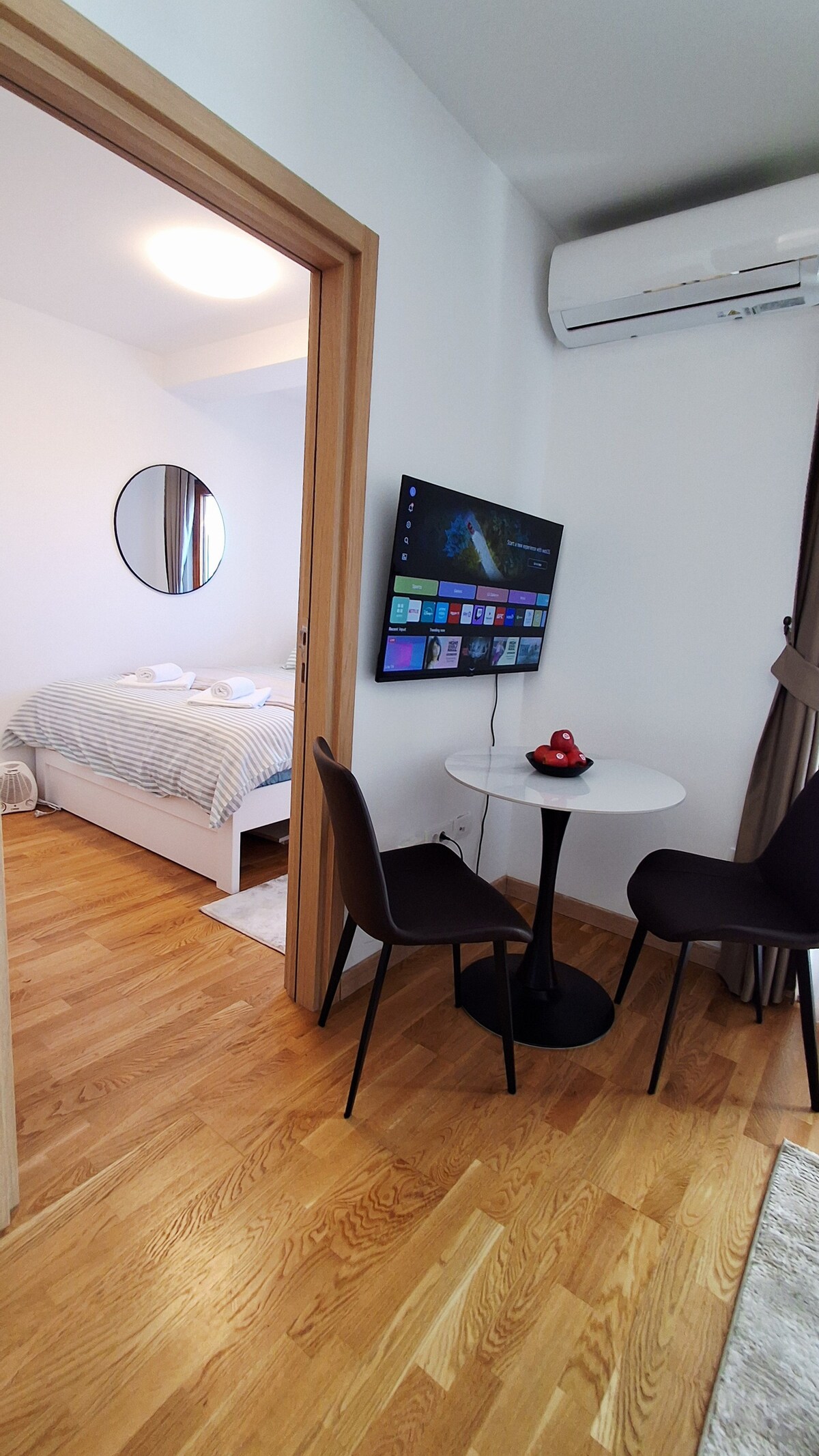 AURORA 33 nije “običan apartman” — prostor je uređen tako da odmah osjetiš mir, stil i kvalitet. Sve je uredno, svježe i spremno da se osjećaš sigurno i opušteno. Krevet i raspored prostora su napravljeni tako da spavaš i odmoriš se kao u dobrom hotelu — bez kompromisa. Sve je praktično i funkcionalno, prostor da se opustiš i da ti ništa ne fali.Blizu svih bitnih gradskih sadržaja, a opet dovoljno mirno da imaš privatnost i tišinu.