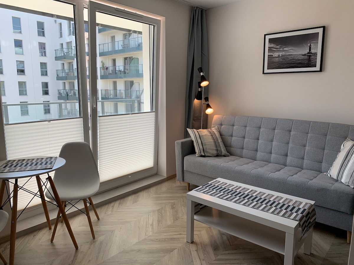 Acogedor apartamento tipo estudio en el centro de negocios Olivia de Gdańsk