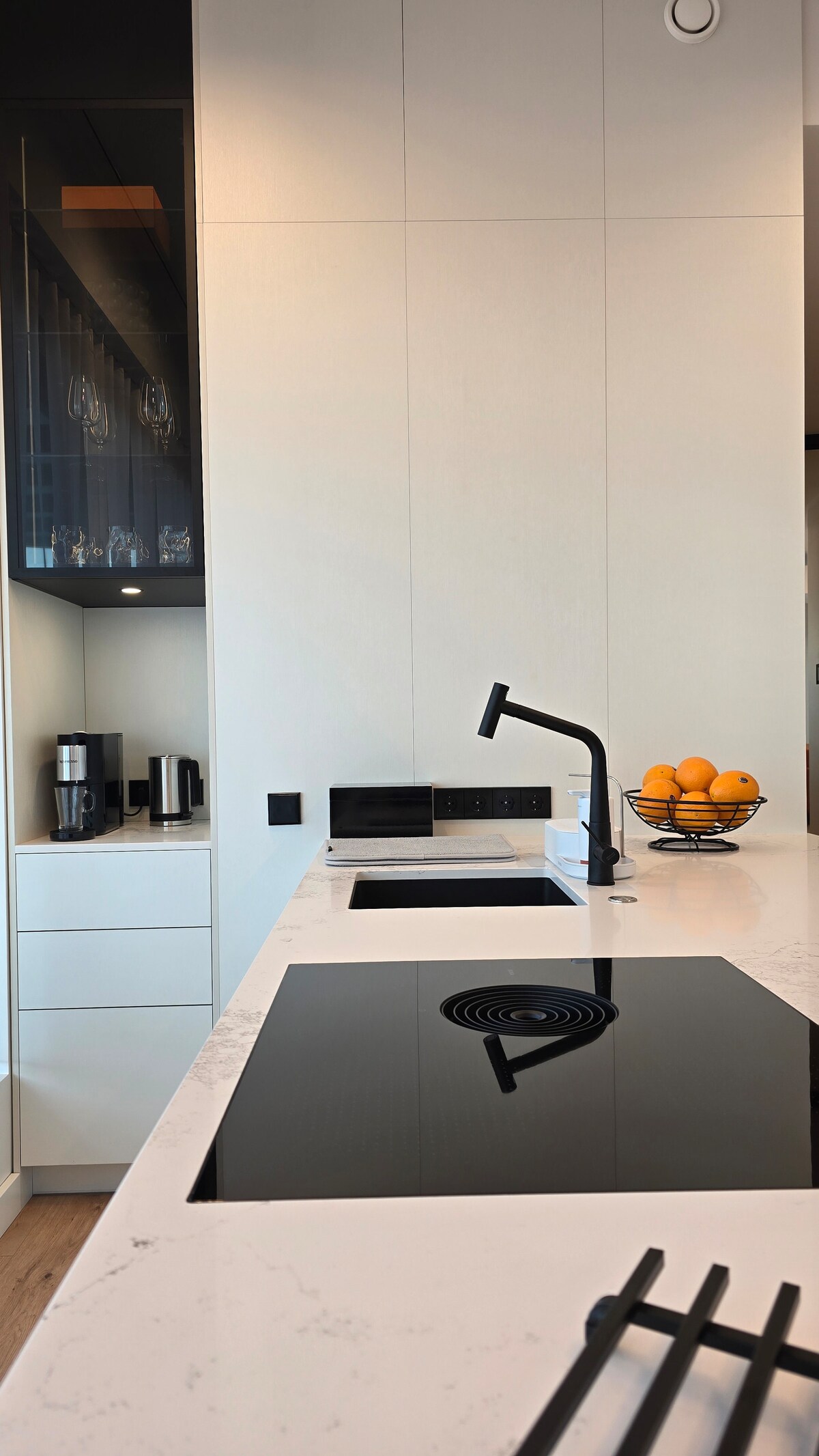 Este apartamento tiene dos plantas, en la planta baja encontrarás una cocina abierta totalmente equipada, comedor para 7 personas, sala de estar con sofá y TV de pantalla plana (sin CABLE). También el dormitorio principal con cama King, vestidor y baño completo con ducha. El nivel superior tiene 2 dormitorios, baño y rincón de oficina abierto con sofá cama y escritorio ajustable con 2 monitores. El primer dormitorio tiene 2 camas individuales (90x200), el segundo dormitorio tiene una cama doble (120x200), ambos tienen un armario y un escritorio para niños con silla.