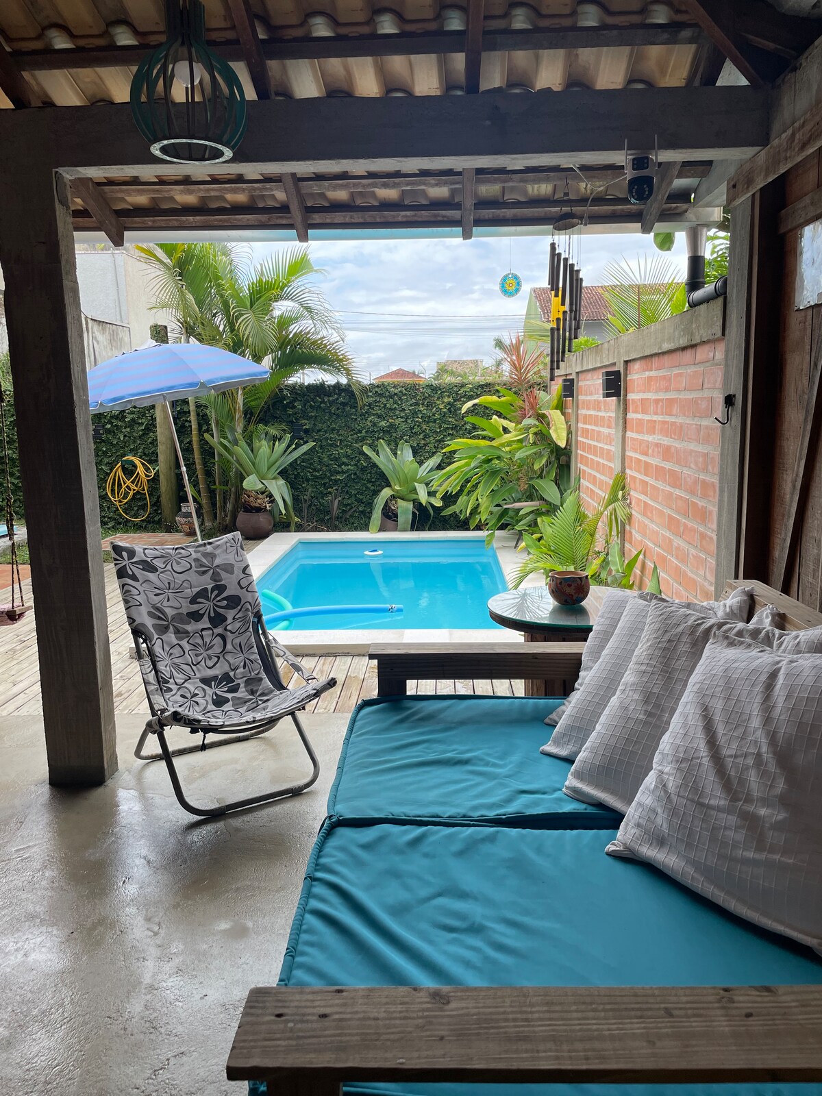 Relájate con toda tu familia en un nuevo alojamiento encantador y acogedor. La estructura es moderna y diseñada, piscina con calefacción solar, amplia zona de ocio, barbacoa equipada, habitaciones con aire acondicionado Daikin activado a través de Wi-Fi, grifos y duchas con calefacción por gas, alarma monitoreada las 24 horas y cámaras externas. Ofrecemos un carrito de playa, sillas y sombrilla. Disfruta de buenos momentos. A 7 minutos del envío a Ilha do Mel.