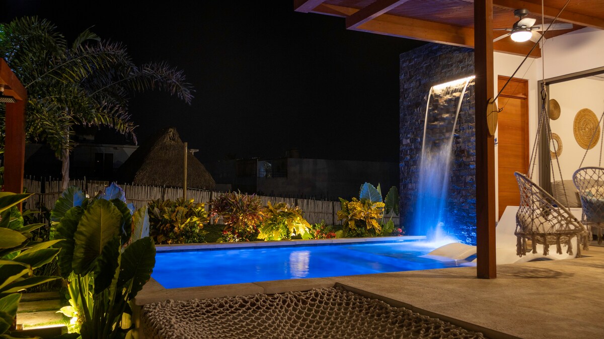 Surya es una propiedad frente a la playa donde disfrutarás de la naturaleza al máximo. Un diseño singular y una comodidad excepcional harán que tu estancia aquí sea inolvidable. Dos bungalows dobles, una habitación para 4 personas en el segundo piso, piscina infinita frente a la playa, amplio jardín, cocina totalmente equipada y una sala de estar donde podrás disfrutar de las vistas y la brisa durante todo el día.