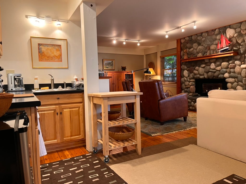 Estudio tranquilo en la ciudad. Ubicación conveniente, a poca distancia a pie de Starbucks y comestibles. Nuestro estudio cuenta con una amplia cocina totalmente equipada y un baño completo con bañera. ¡El patio privado es una de nuestras características favoritas! ¡Disfruta de las hermosas vistas a las montañas olímpicas y de las coloridas puestas de sol! Utilizamos productos de limpieza no tóxicos a base de plantas y detergente para ropa «free&clear» para que tu estancia sea más cómoda. ¡Aromaterapia con aceites esenciales puros de grado terapéutico para brindar una experiencia similar a la de un spa!