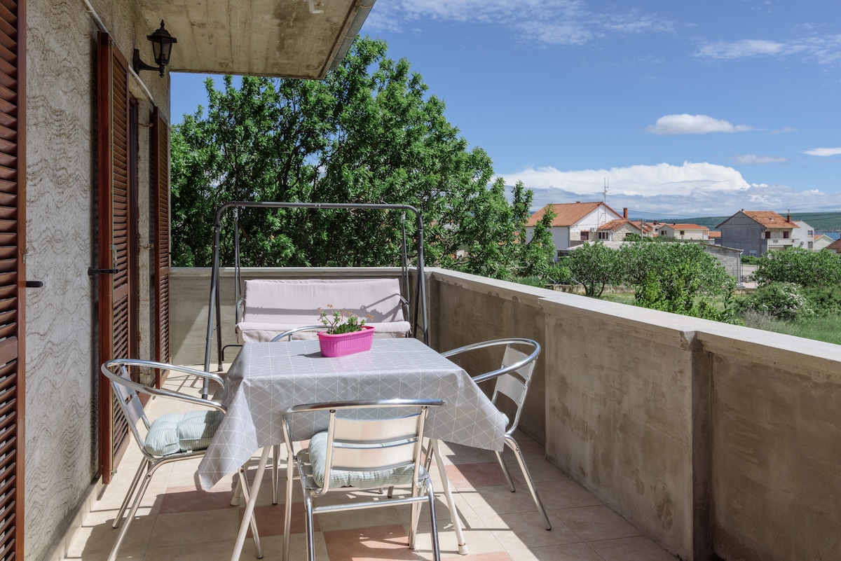 Un apartamento ideal para unas vacaciones familiares, ubicado en Gornji Poličnik en un entorno tranquilo con vistas a las montañas y a una terraza en la naturaleza virgen. La propiedad se encuentra a 14 km de Zadar. El apartamento consta de 3 dormitorios con una cama adicional ubicada en la sala de estar. También ofrecemos una cocina totalmente equipada con lavavajillas y horno, comedor y baño con ducha. Biograd na Moru está a 29 km del apartamento y a 37 km de Pag. El aeropuerto de Zadar está a 10,5 km de nuestro departamento.
