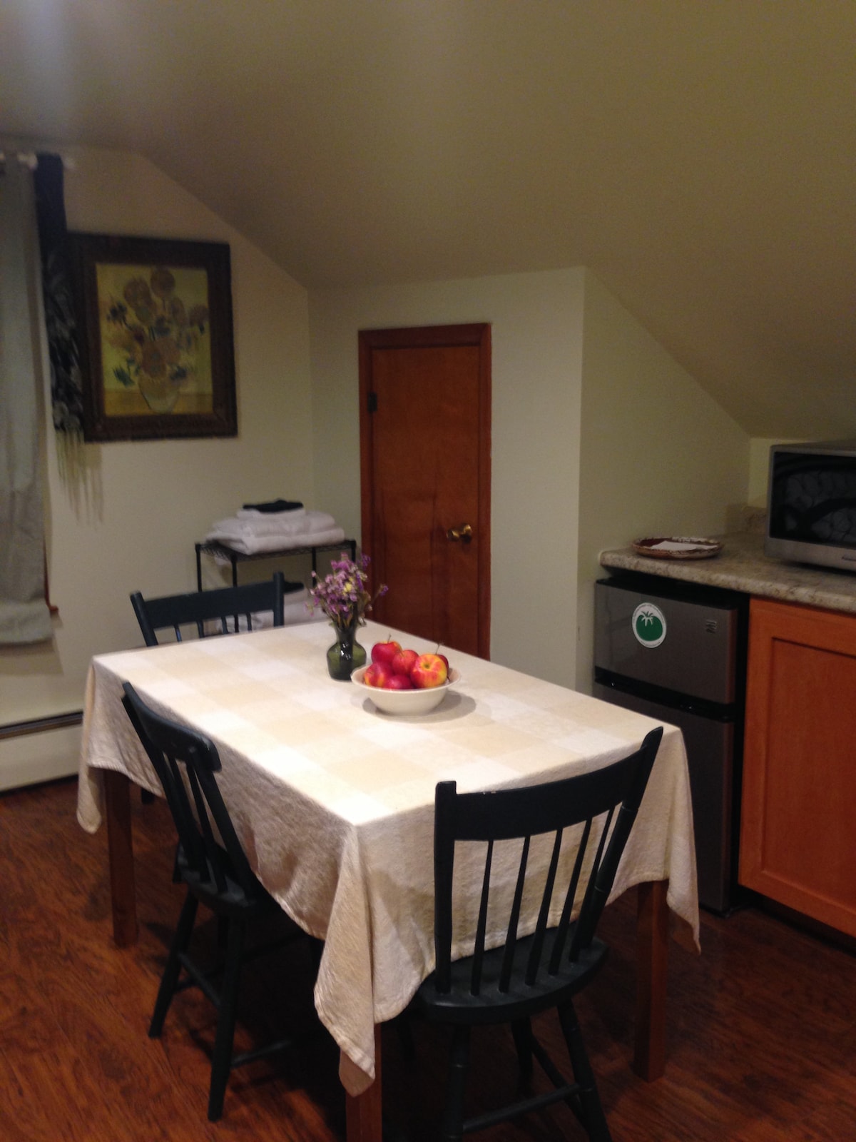 La casa de un artista en una tranquila calle sin salida en el pueblo de Potsdam, Nueva York. Suite de 2 habitaciones recién renovada en la planta superior, con capacidad para 4 personas, con su propia ducha a ras de suelo y baño completo. Entrada independiente. No accesible para personas con discapacidad. Cerca de hospitales, escuelas y universidades locales. Circuito de carreras/senderismo cerca. No se permite fumar ni vapear. No se admiten mascotas.