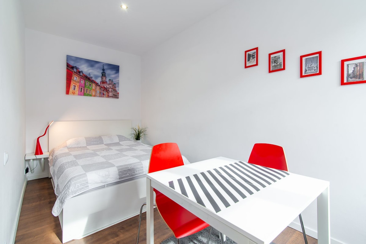 ✨ Acogedora habitación individual junto al antiguo mercado 150 m 🏡 Acerca de este alojamiento Te damos la bienvenida a nuestra cómoda y elegante habitación individual, perfecta para viajeros solitarios y huéspedes de negocios. La habitación combina un diseño moderno con toda la funcionalidad, lo que garantiza una estancia relajante en el corazón de Poznań. Lo más destacado: llegada autónoma, estacionamiento monitoreado y restaurante en el lugar.