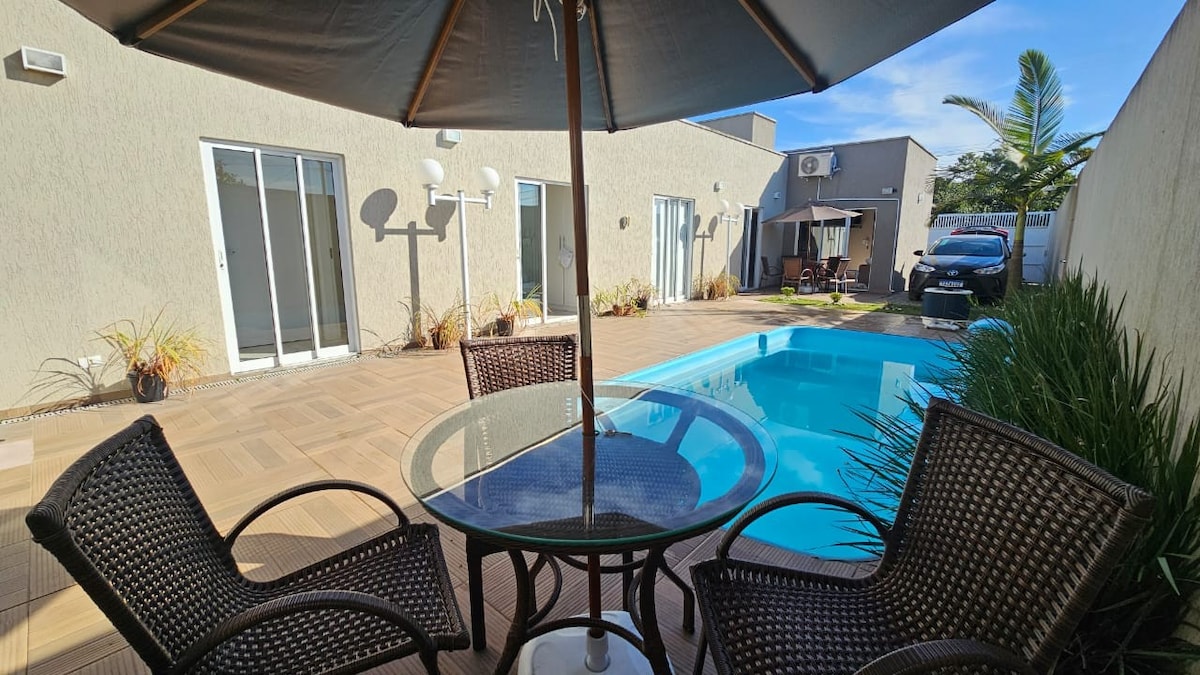 Relájate en este lugar único y silencioso. Delante de la bahía de Guaratuba, esta casa tiene todo el ocio que tu familia necesita. Red Vollei, terraza para pesca o prácticas deportivas en agua, piscina, barbacoa, piscina infinita, espacio de lectura, juegos y sala de televisión. La casa solo será para tu familia ( dos dormitorios estarán cerrados con llave, ya que son para uso exclusivo de los propietarios). Una habitación tiene aire acondicionado y ventilador de piso. ¡EXPRESAMENTE PROHIBIDO RECIBIR VISITAS!